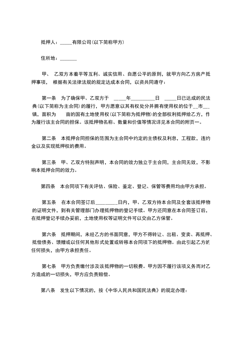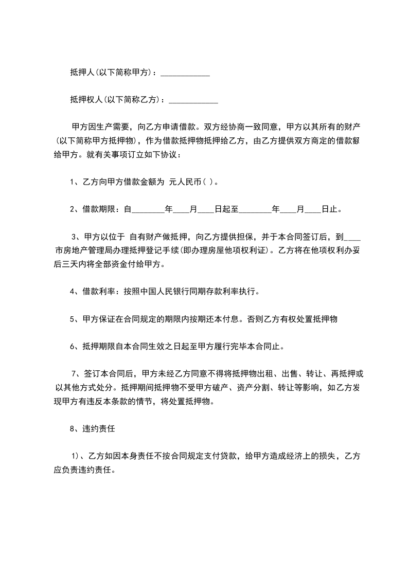 第七条本合同的相关费用(包括抵押登记、公证等)均由乙方负责。抵押条款