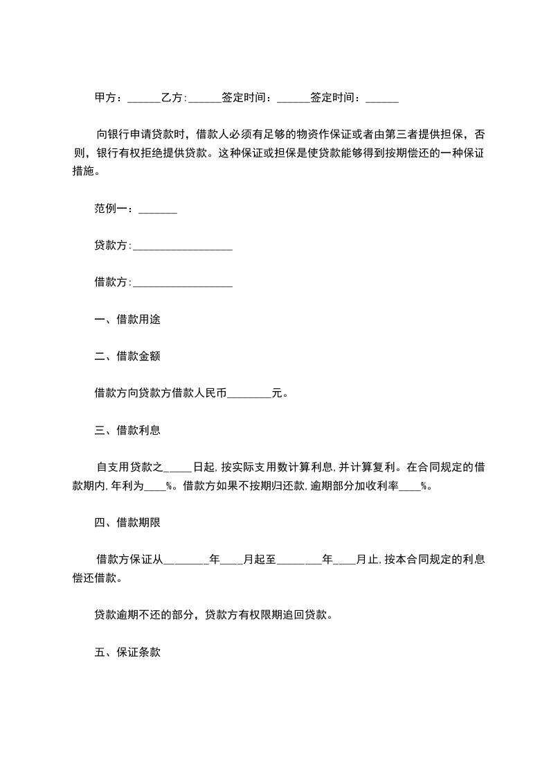 第一条经乙方申请,甲方同意借款给乙方