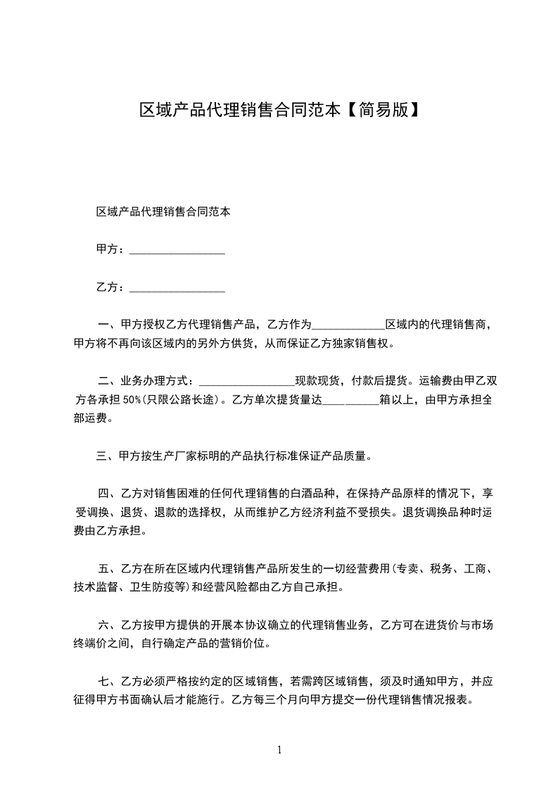 7.乙方在云南____市内进行产品的直接销售,并且严格执行甲方的营销策略及价格体系,不允许发展或招募分在代____区域外的营销。