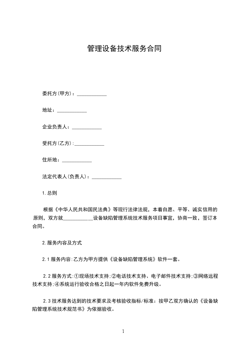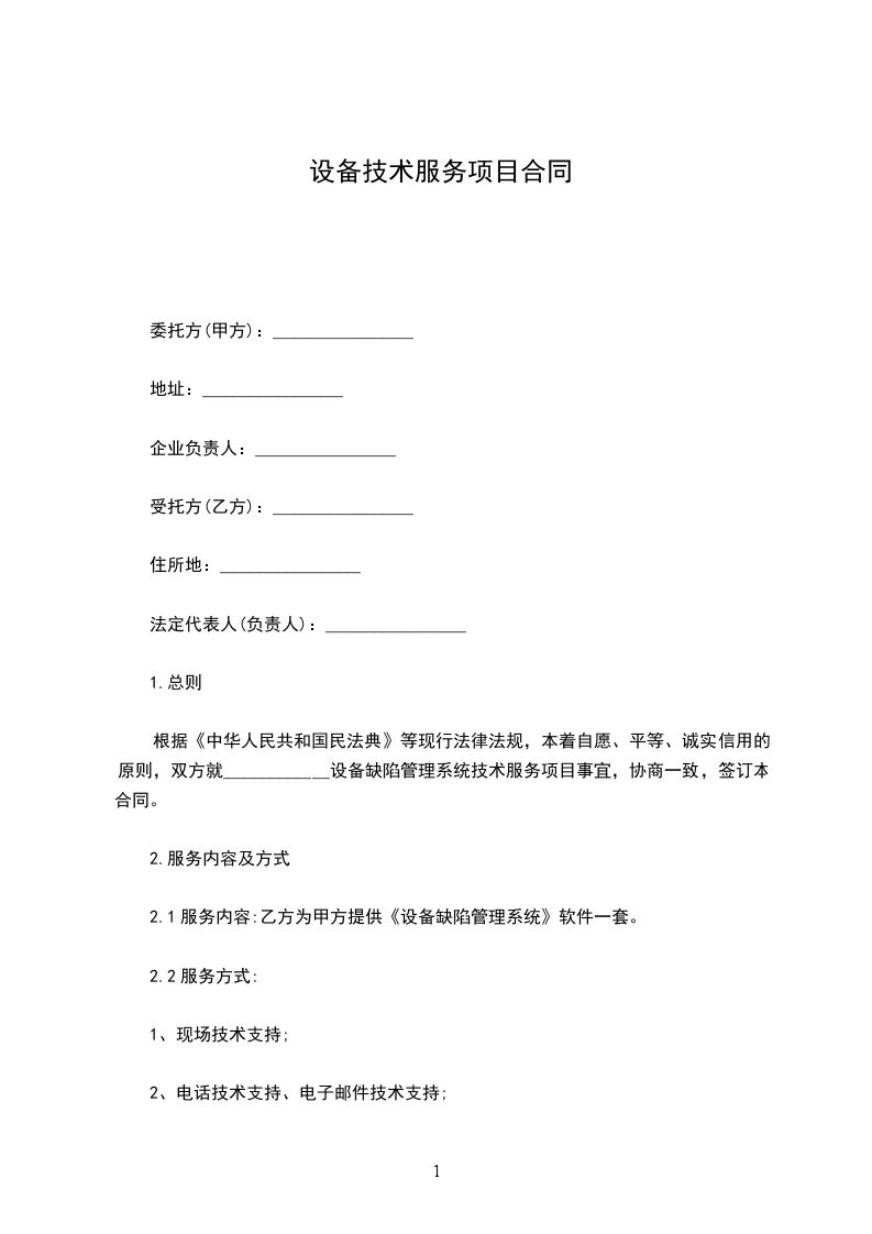 根据《中华人民共和国民法典》等现行法律法规,本着自愿、平等、诚实信用的原则,双方就____________设备缺陷管理系统技术服务项目事宜,协商一致,签订本合同。