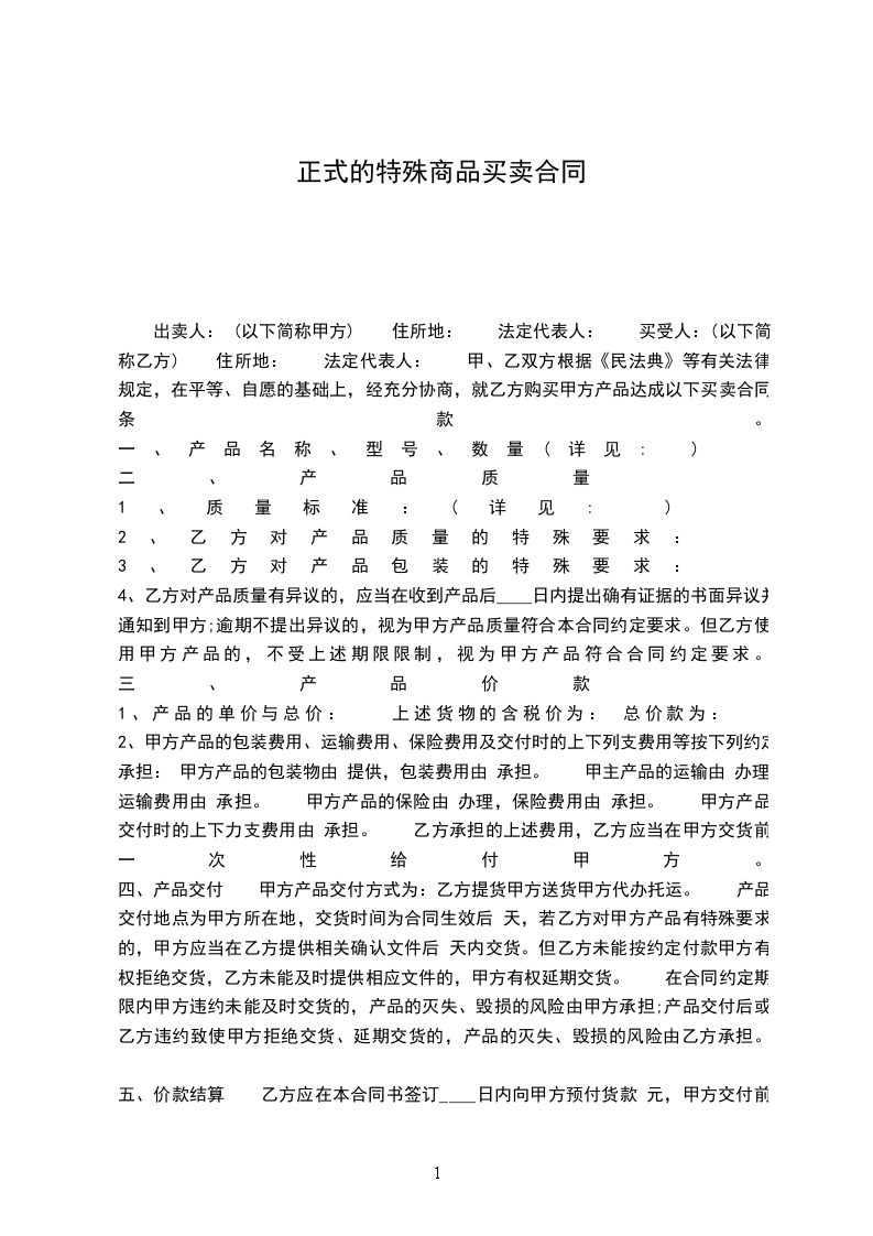 出卖人: (以下简称甲方) 住所地: 法定代表人: 买受人:(以下简称乙方) 住所地: 法定代表人: 甲、乙双方根据《民法典》等有关法律规定,在平等、自愿的基础上,经充分协商,就乙方购买甲方产品达成以下买卖合同条款。
