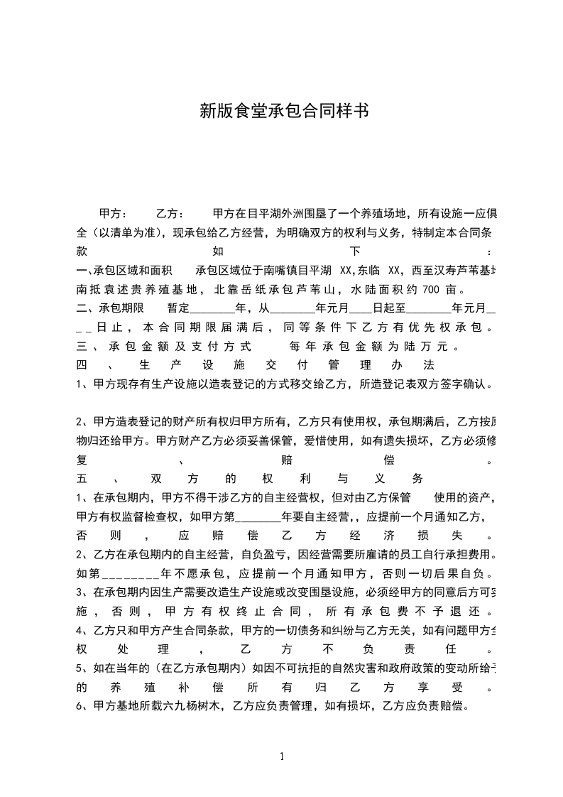 甲方: 乙方: 甲方在目平湖外洲围垦了一个养殖场地,所有设施一应俱全(以清单为准),现承包给乙方经营,为明确双方的权利与义务,特制定本合同条款如下: