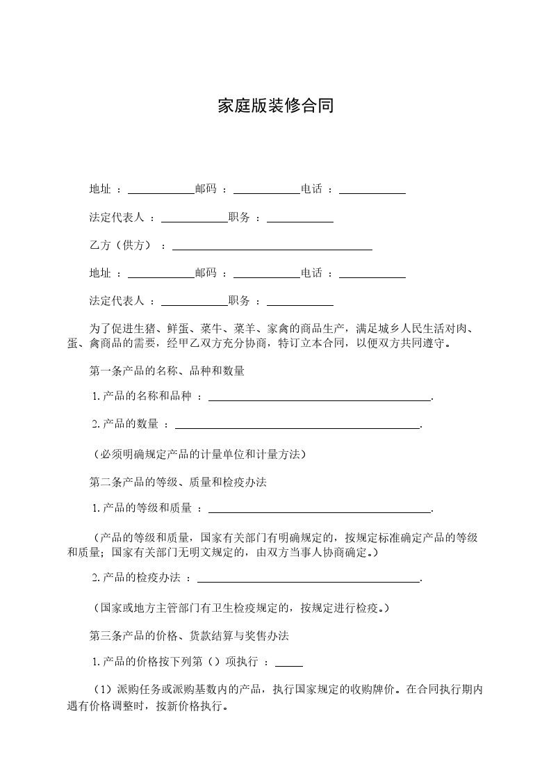 为了促进生猪、鲜蛋、菜牛、菜羊、家禽的商品生产,满足城乡人民生活对肉、蛋、禽商品的需要,经甲乙双方充分协商,特订立本合同,以便双方共同遵守。