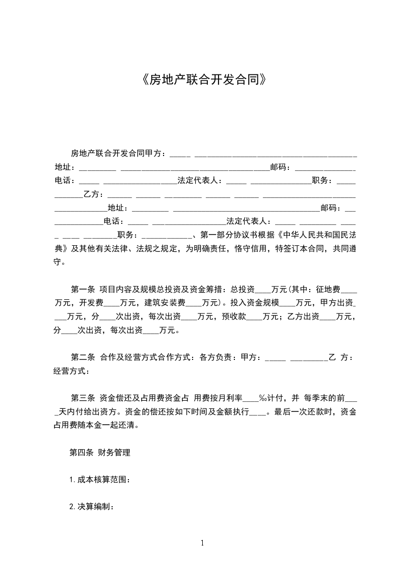 一、双方同意以甲方名义向_______市_______区政府管理部门申请“______________大厦”建设项目。该项目申请土地面积暂定为_______亩,具体以甲方与土管部门签订的《土地出让合同》及此后颁发的《土地使用权证》的记载为准,土地用途为__________。