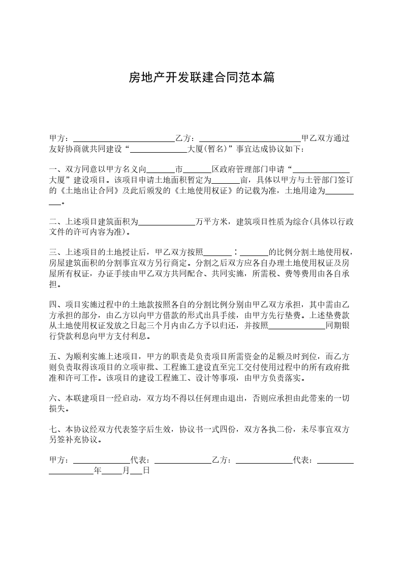 甲方:_________________________乙方:_________________________甲乙双方通过友好协商就共同建设“______________大厦(暂名)”事宜达成协议如下: