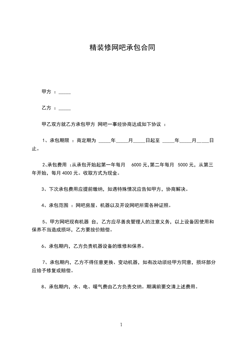 甲乙双方就乙方承包甲方网吧一事经协商达成如下协议 :