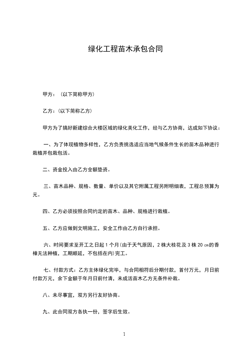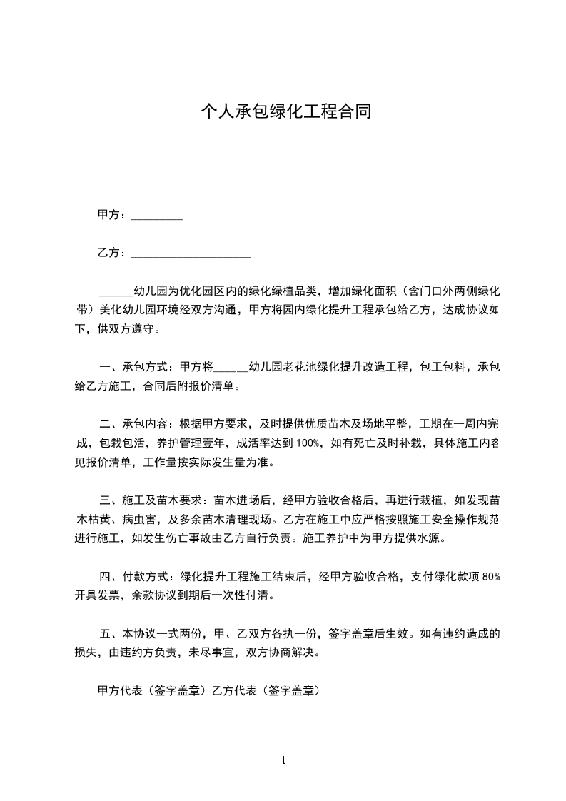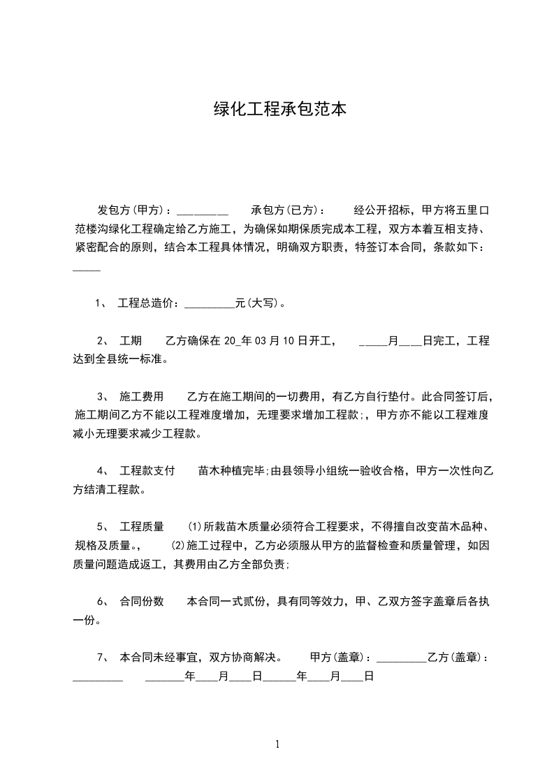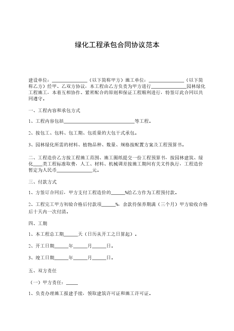 建设单位:_______________(以下简称甲方)施工单位:_______________(以下简称乙方)经甲、乙双方协议,本工程由乙方负责为甲方进行_______________园林绿化工程施工,本着互相协作、紧密配合的原则和保证工程顺利进行,特签订此合同以共同遵守。