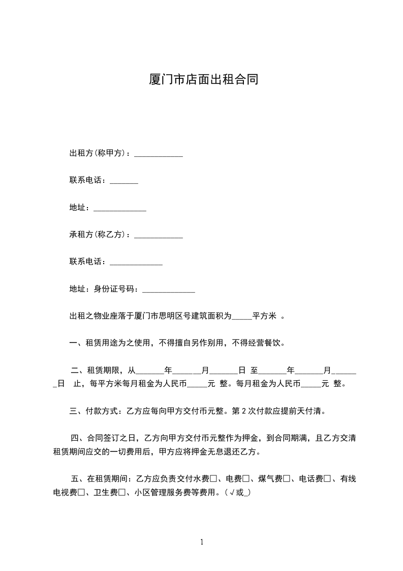 八、乙方不得利用该店面之便进行非法活动,如有发现,甲方有权提前终止合同,乙方所缴纳的押金则作为赔偿甲方的违约金,乙方要承担因非法活动而产生的一切民事、经济、法律责任,甲方概不负责。