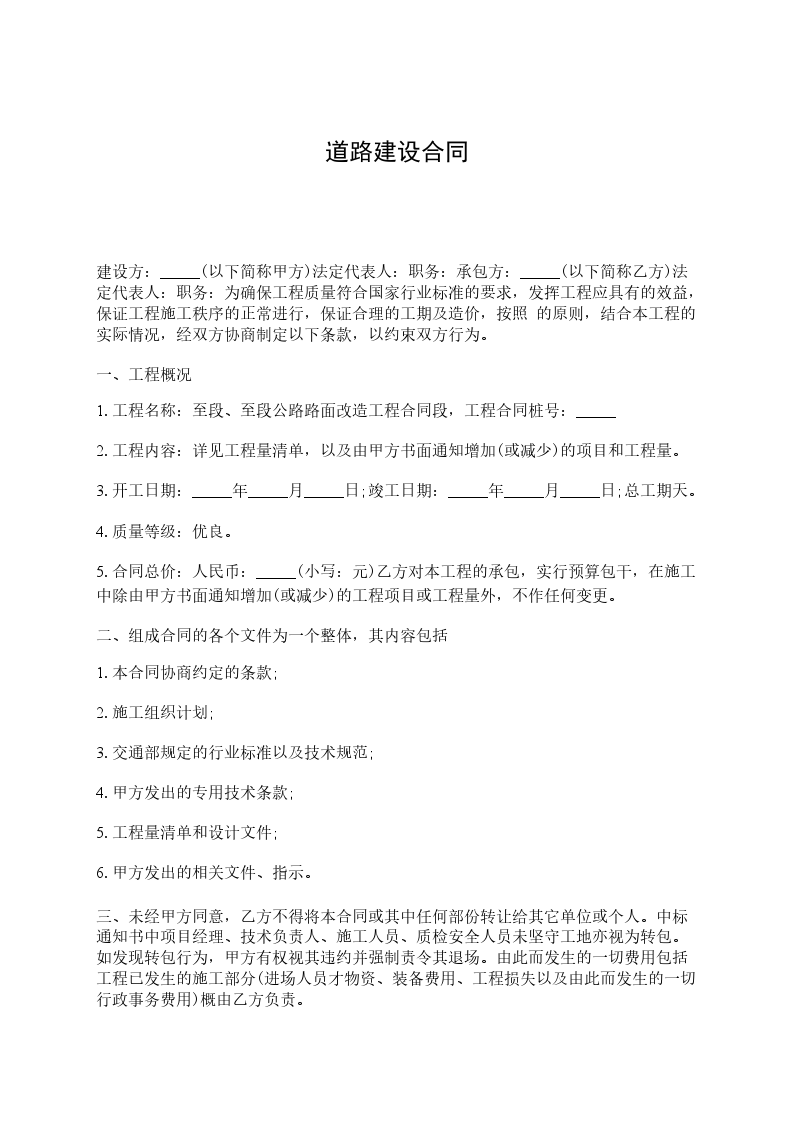 建设方:_____(以下简称甲方)法定代表人:职务:承包方:_____(以下简称乙方)法定代表人:职务:为确保工程质量符合国家行业标准的要求,发挥工程应具有的效益,保证工程施工秩序的正常进行,保证合理的工期及造价,按照 的原则,结合本工程的实际情况,经双方协商制定以下条款,以约束双方行为。