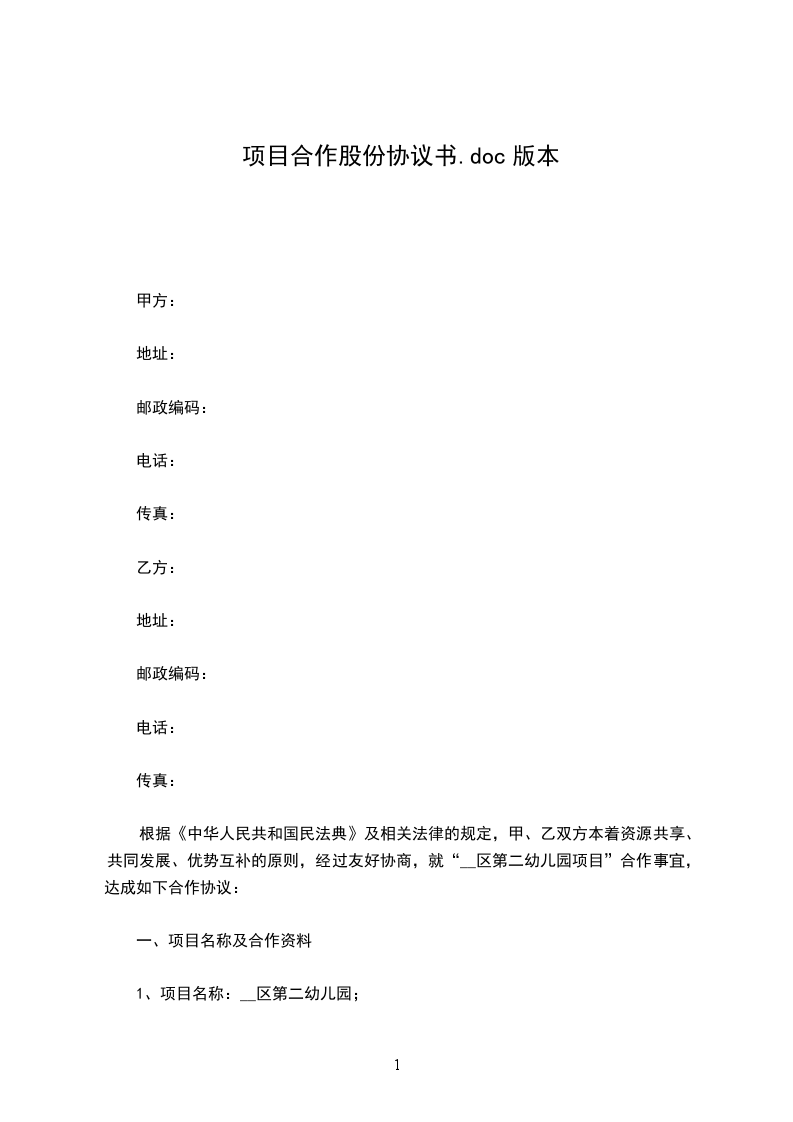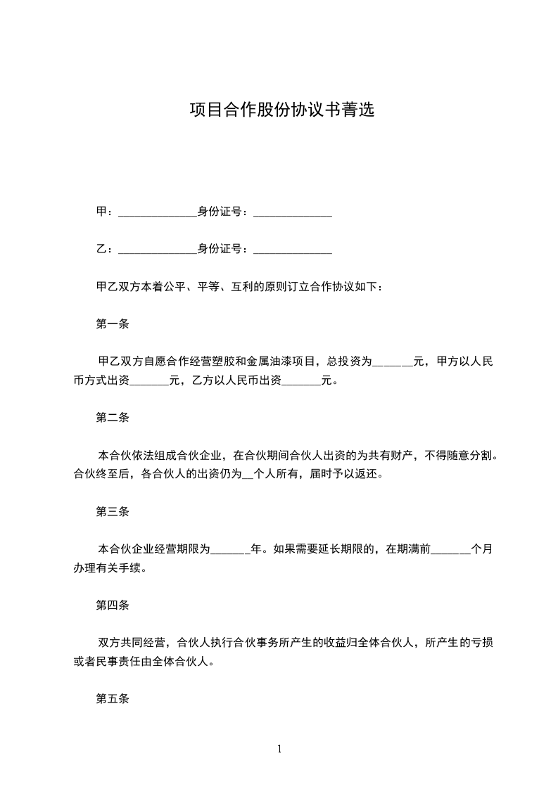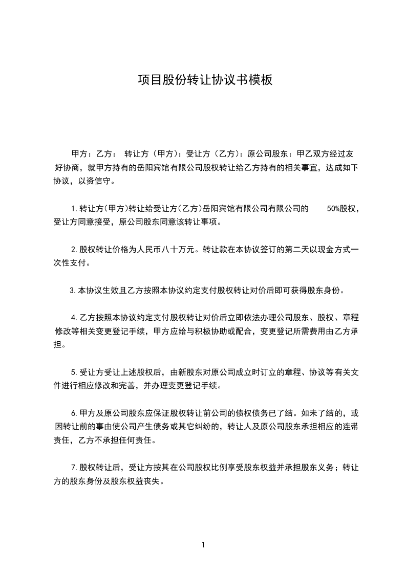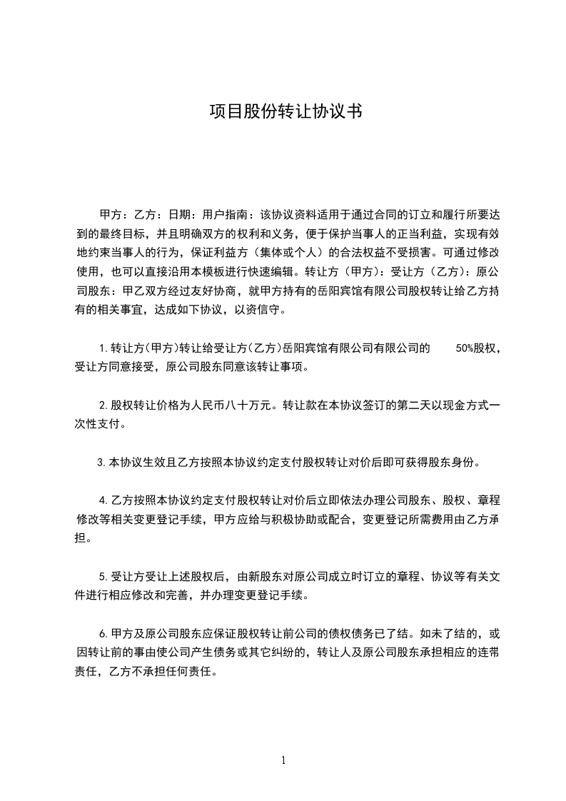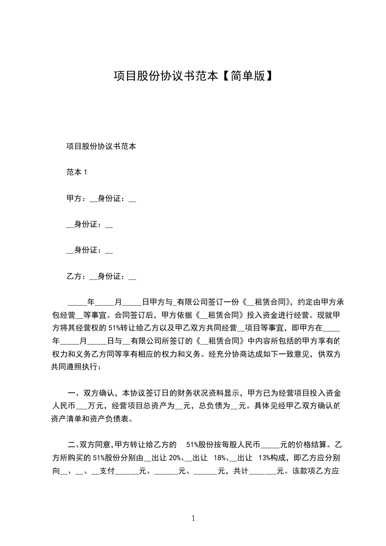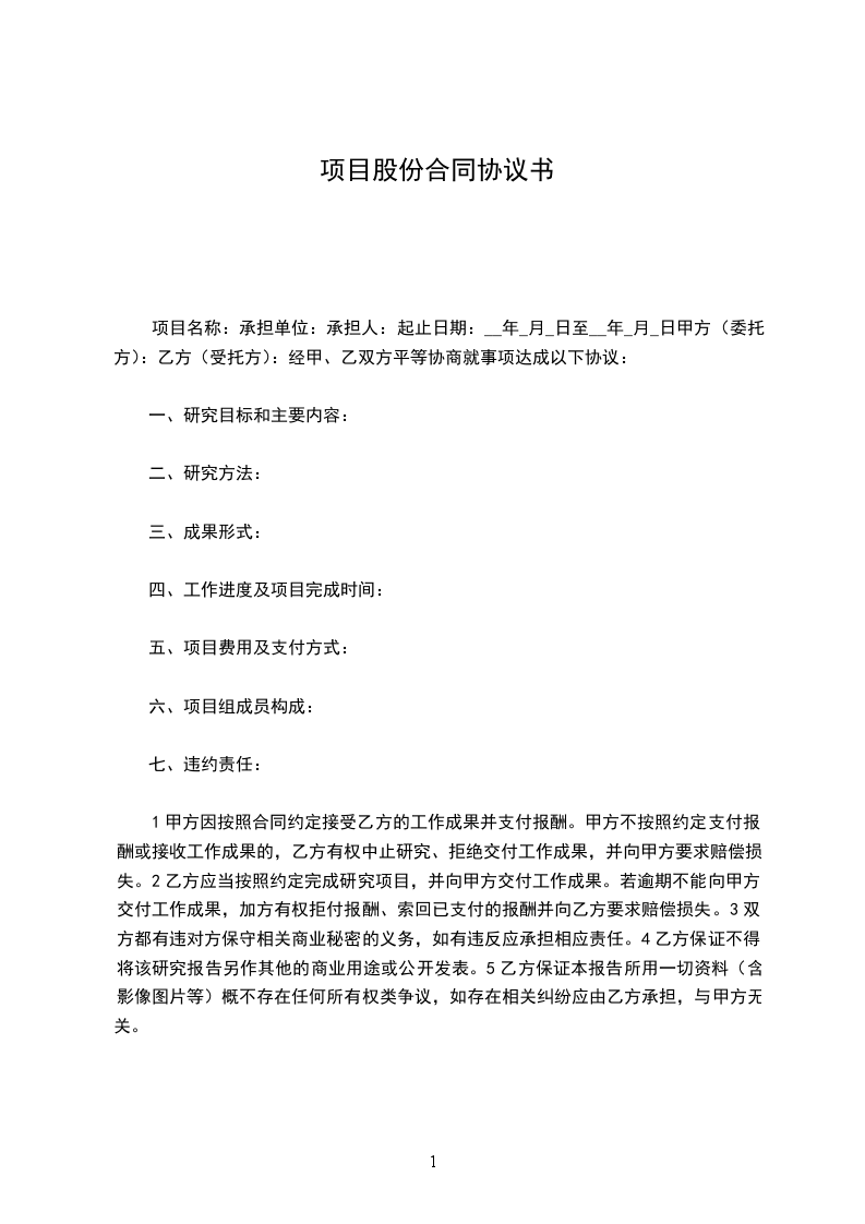 项目股份协议书【3】
