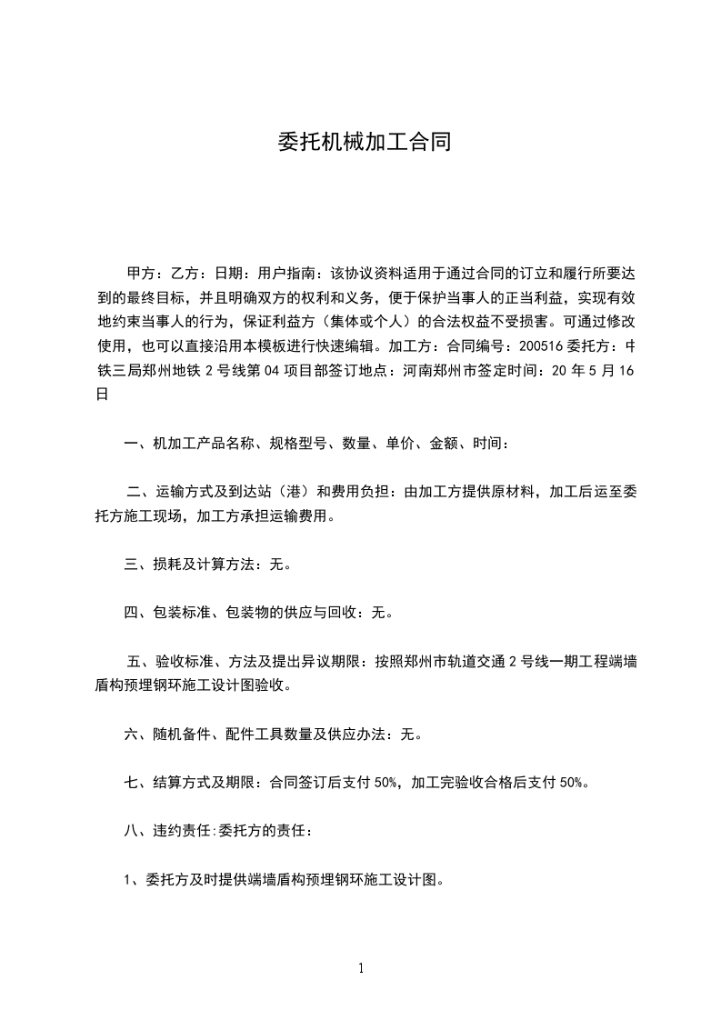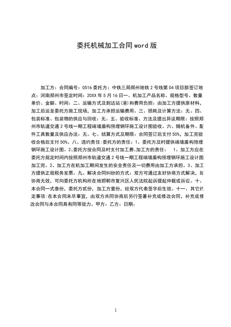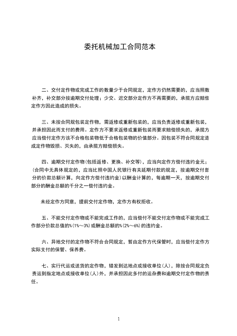 甲方(盖章):______乙方(盖章):代表(签字):代表(签字):日期:_____年_____月_____日日期:_____年_____月_____日机械委托范本(三)甲方(委托方):______乙方(制作方):委托方和加工方合称为双方。委托方与加工方在平等、自愿基础上,经友好协商签订此协议,以资共同遵守:
