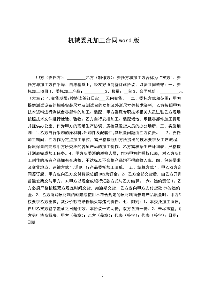 1、本委托加工协议,自甲乙双方签字盖章之日起生效。本协议一式两份,双方各持一份。