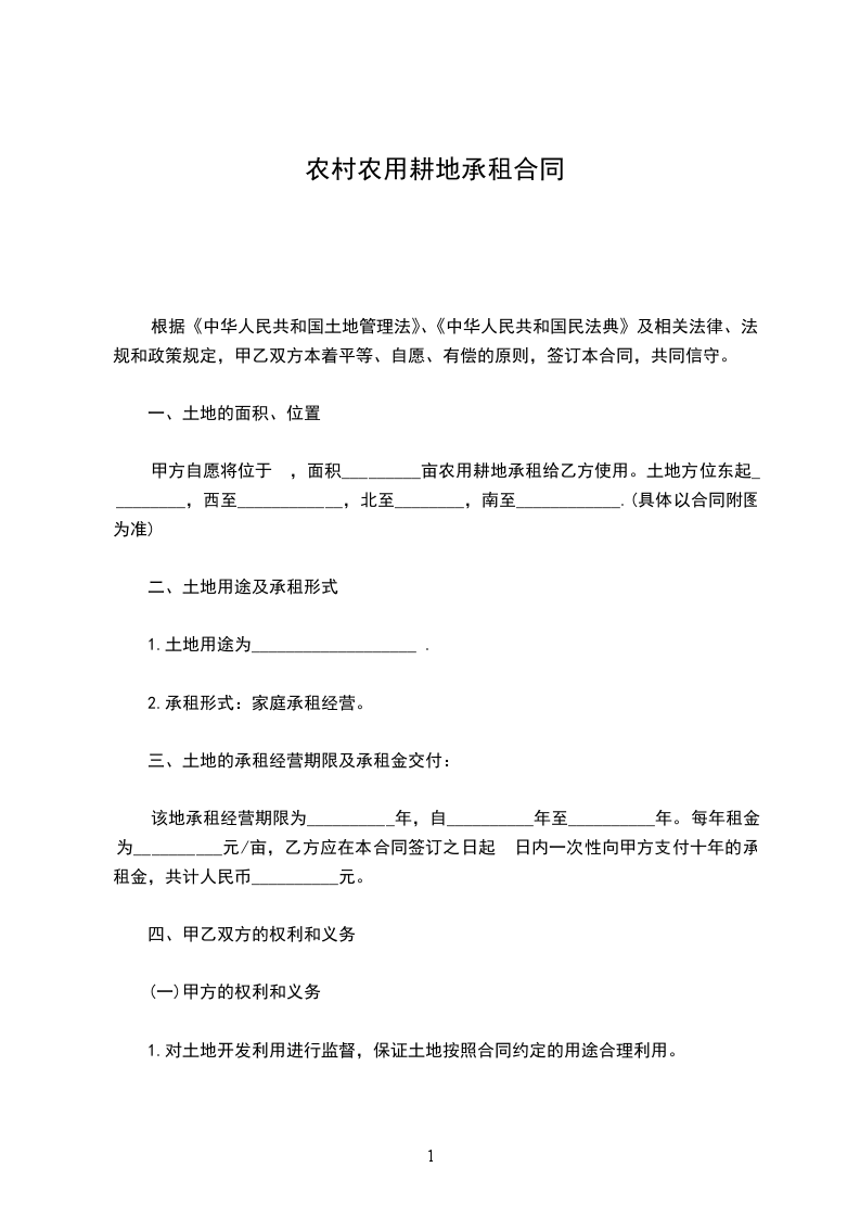 根据《中华人民共和国土地管理法》、《中华人民共和国民法典》及相关法律、法规和政策规定,甲乙双方本着平等、自愿、有偿的原则,签订本合同,共同信守。