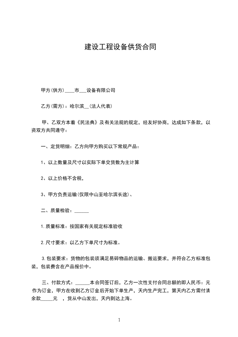 甲方(供方)____市___设备有限公司