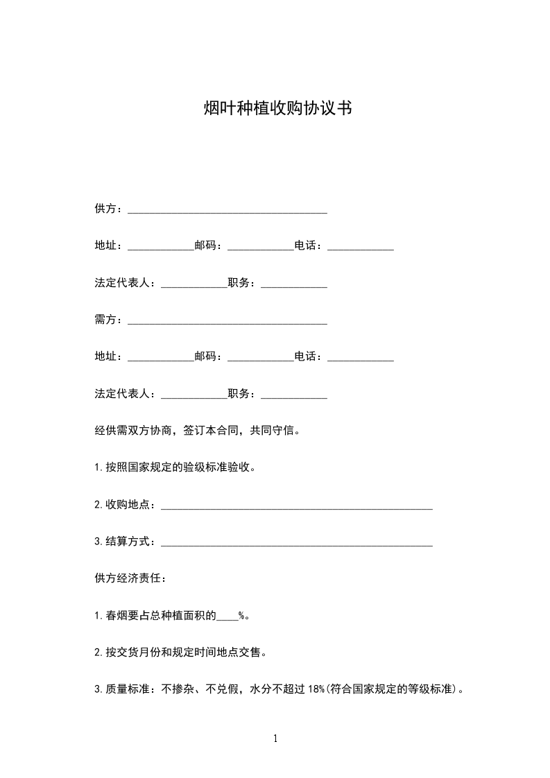2.在烟叶收购时,约时定点并做到随到随收,不得无故拖延时间,如不按合同规定时间、数量收购,偿付收购不足部分总值____%的违约金。
