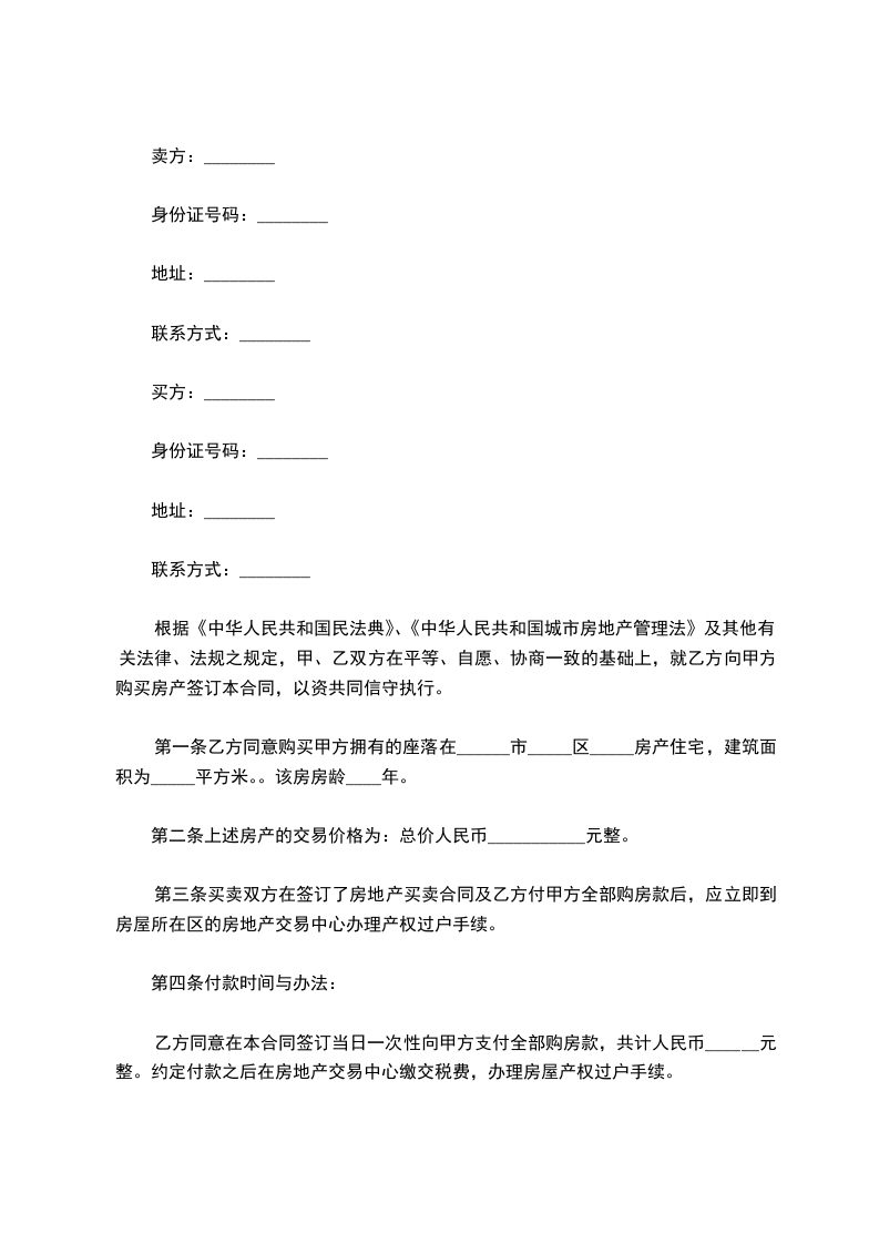 4.1经双方协商同意房产及土地出售价格为人民币_________万元(大写:_________)。