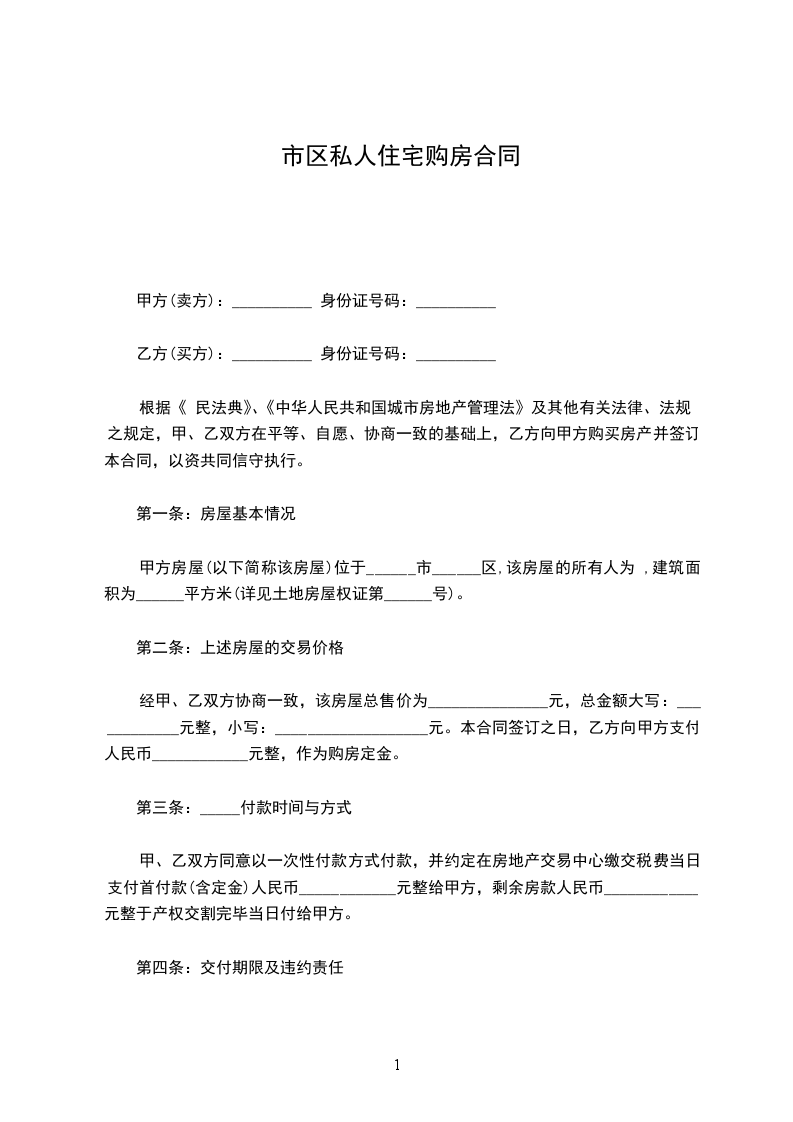 甲方(卖方):__________ 身份证号码:__________