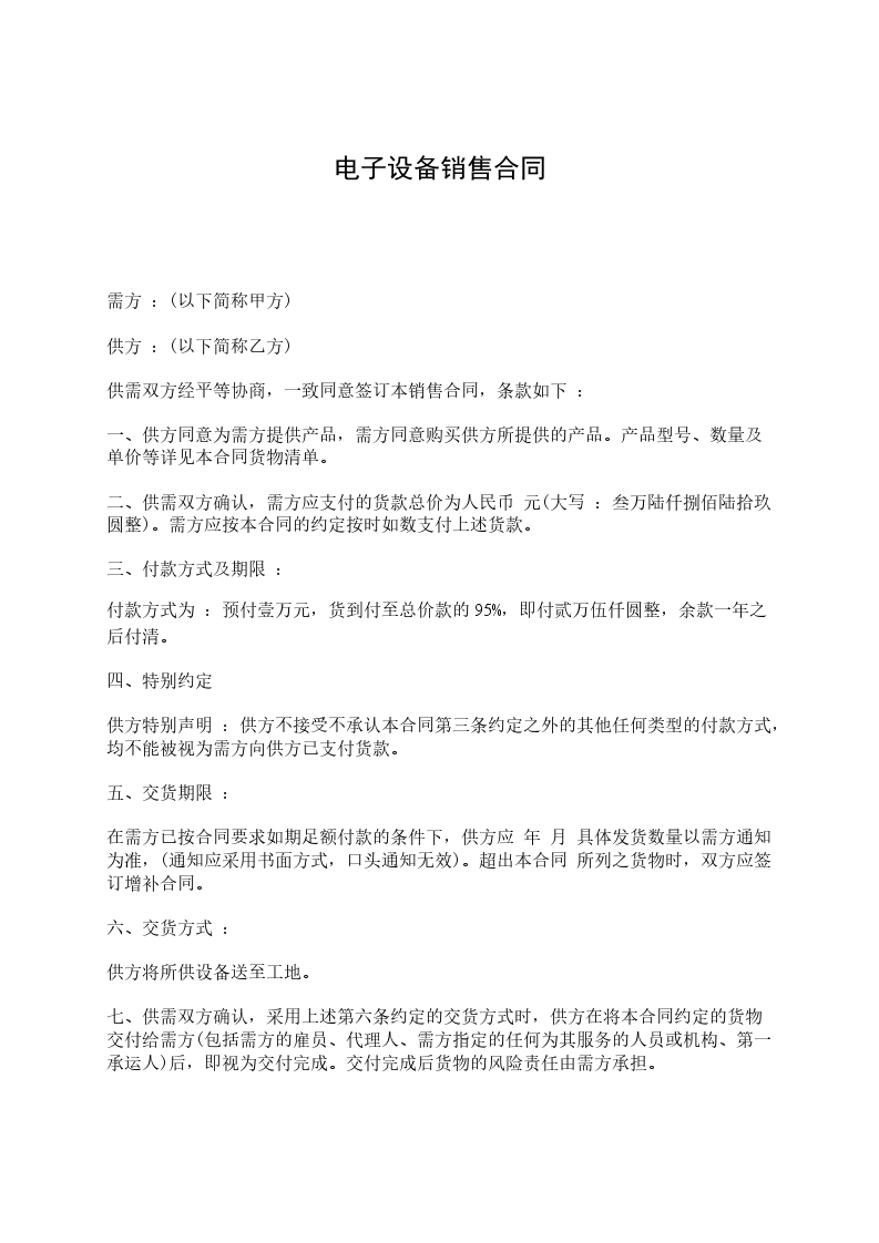 十五、本合同一式贰份,供需双方各执壹份,每份合同文本具有同等法律效力。