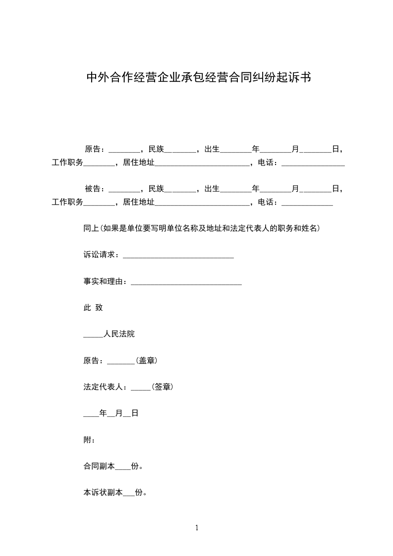 企业承包经营合同纠纷起诉书
