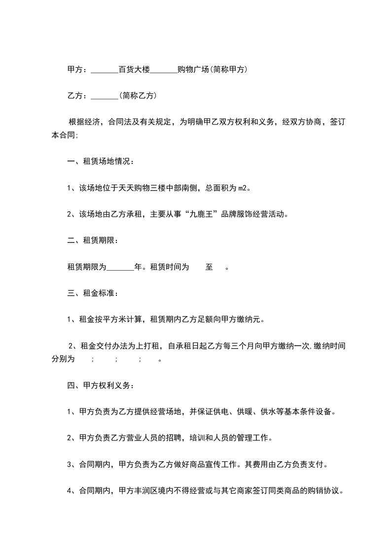 甲方:_______百货大楼_______购物广场(简称甲方)