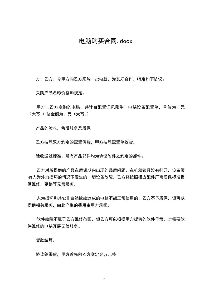 今甲方向乙方采购一批电脑,为友好合作,特定如下协议。