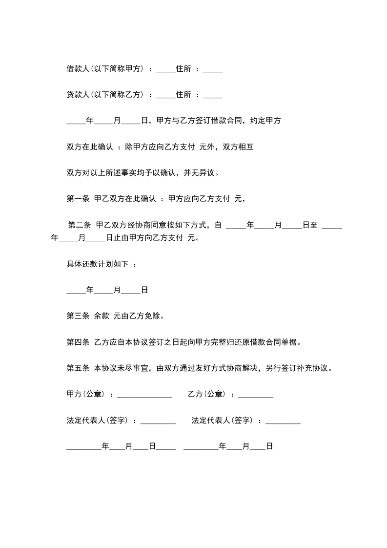 2、甲乙双方约定第二次还款日期为:农历____年____月____日偿还金额为(人民币):_____________¥元