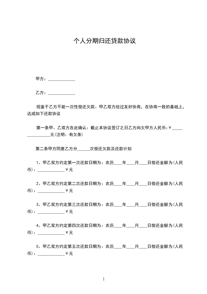 1、甲乙双方约定第一次还款日期为:农历____年____月____日偿还金额为(人民币):_____________¥元
