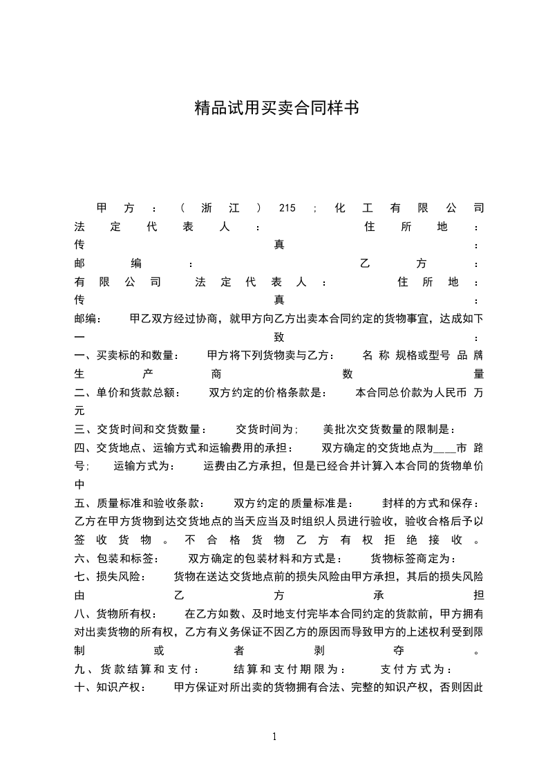 七、文书和意见的送达地址: 双方明确本合同注明的联络方式是合适的,任何因履行本合同的所需的与对方的联系和文书都以上述方式进行,除非经对方的书面确认才得以变更。 甲方:(浙江)215;化工有限公司