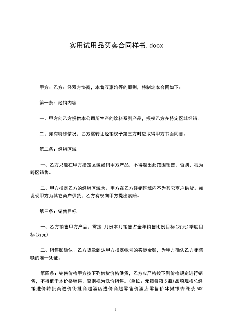 邮编: 甲乙双方经过协商,就甲方向乙方出卖本合同约定的货物事宜,达成如下一致: