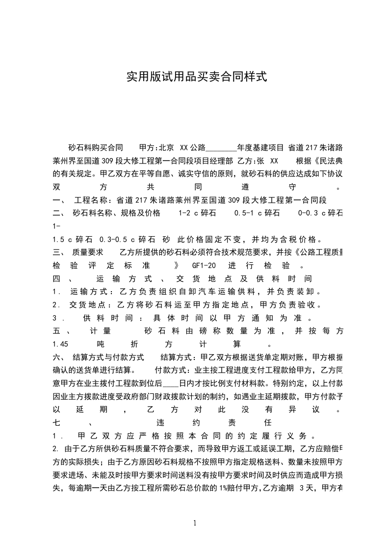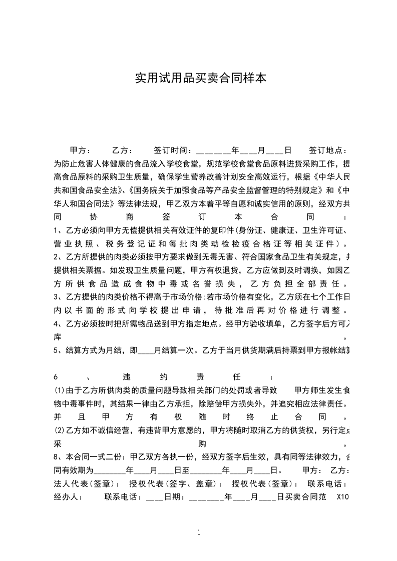 六、合同文本: 本合同一式二份,双方各执一份。 十