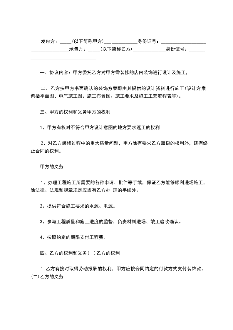 一、协议内容:甲方委托乙方对甲方需装修的店内装饰进行设计及施工,