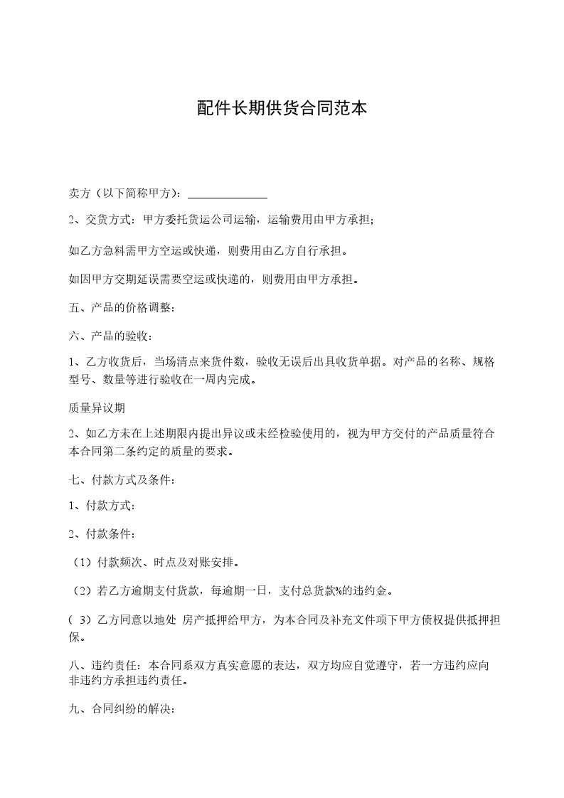 2、交货方式:甲方委托货运公司运输,运输费用由甲方承担;