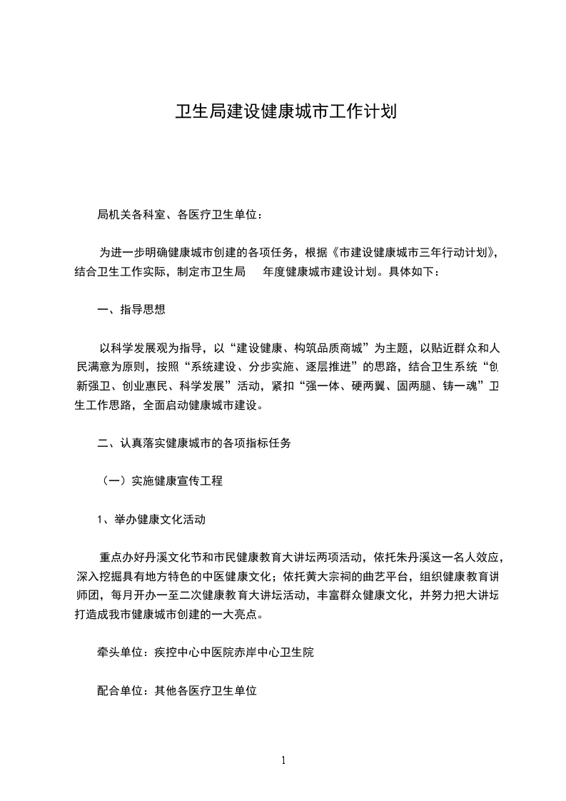 为进一步明确健康城市创建的各项任务,根据《市建设健康城市三年行动计划》,结合卫生工作实际,制定市卫生局 年度健康城市建设计划。具体如下:
