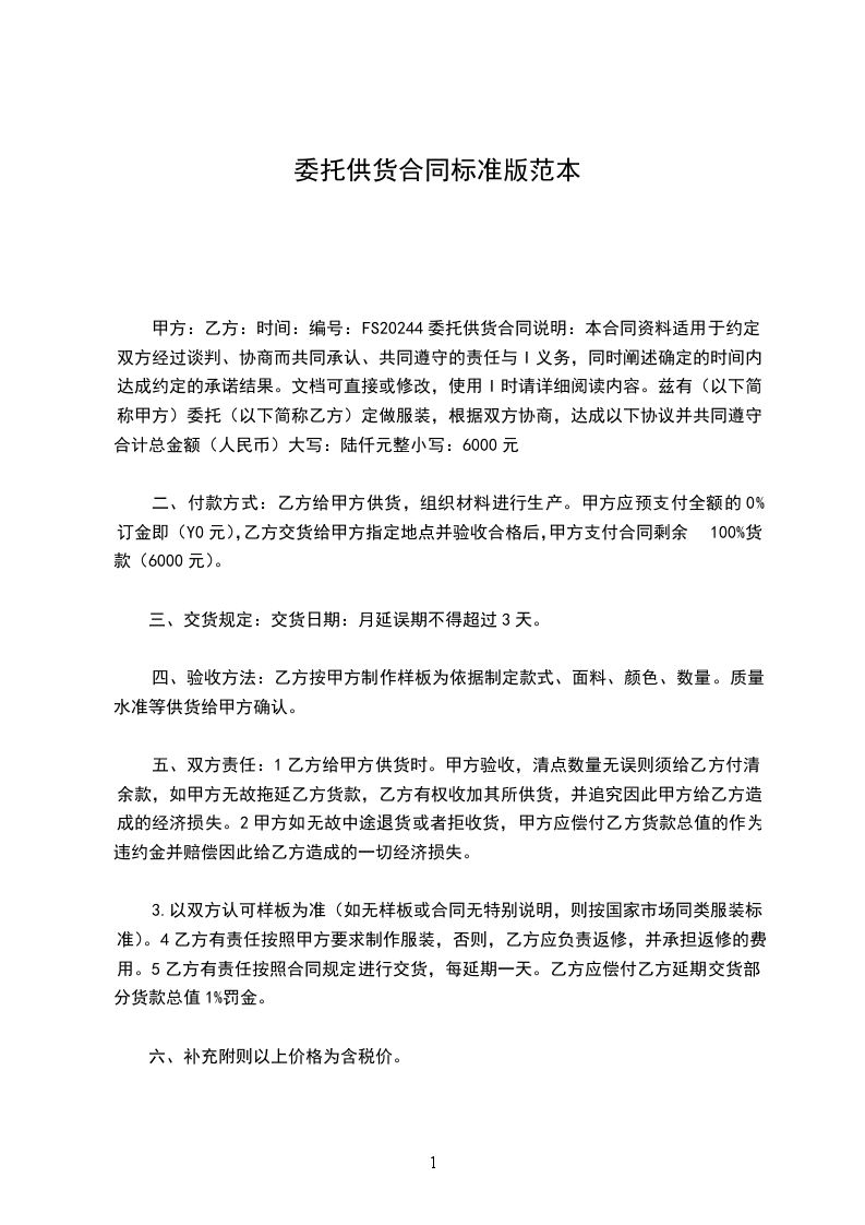 兹有 (以下简称甲方)委托 (以下简称乙方)定做服装,根据双方协商,达成以下协议并共同遵守。