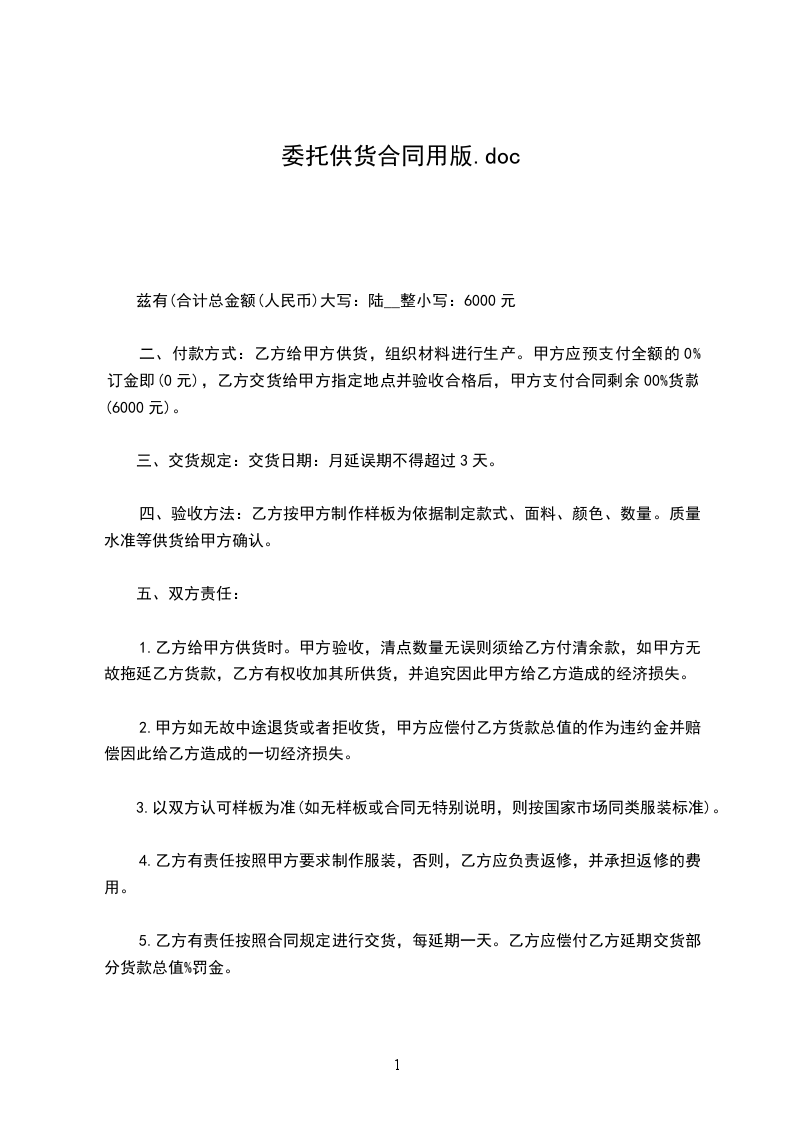 5.乙方有责任按照合同规定进行交货,每延期一天。乙方应偿付乙方延期交货部分货款总值1 %罚金。