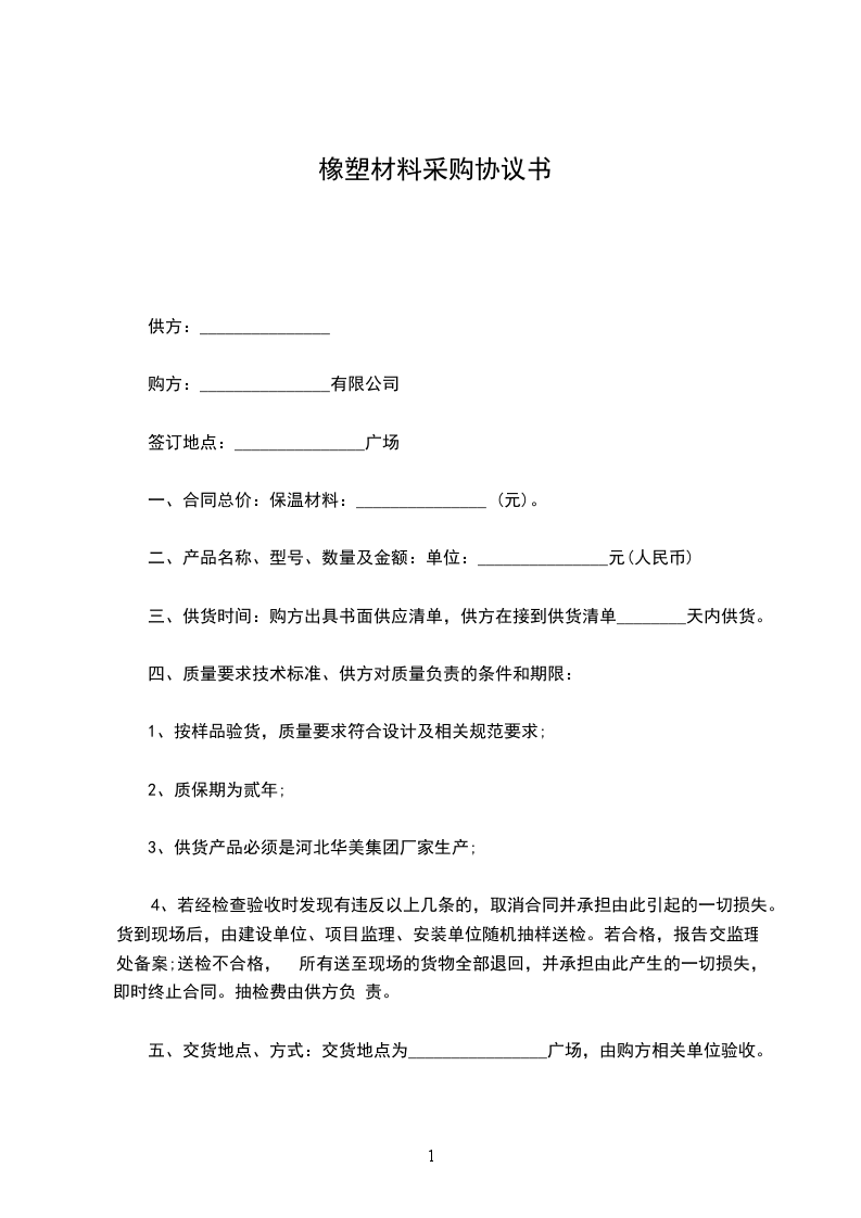 一、合同总价:保温材料:_______________ (元)。