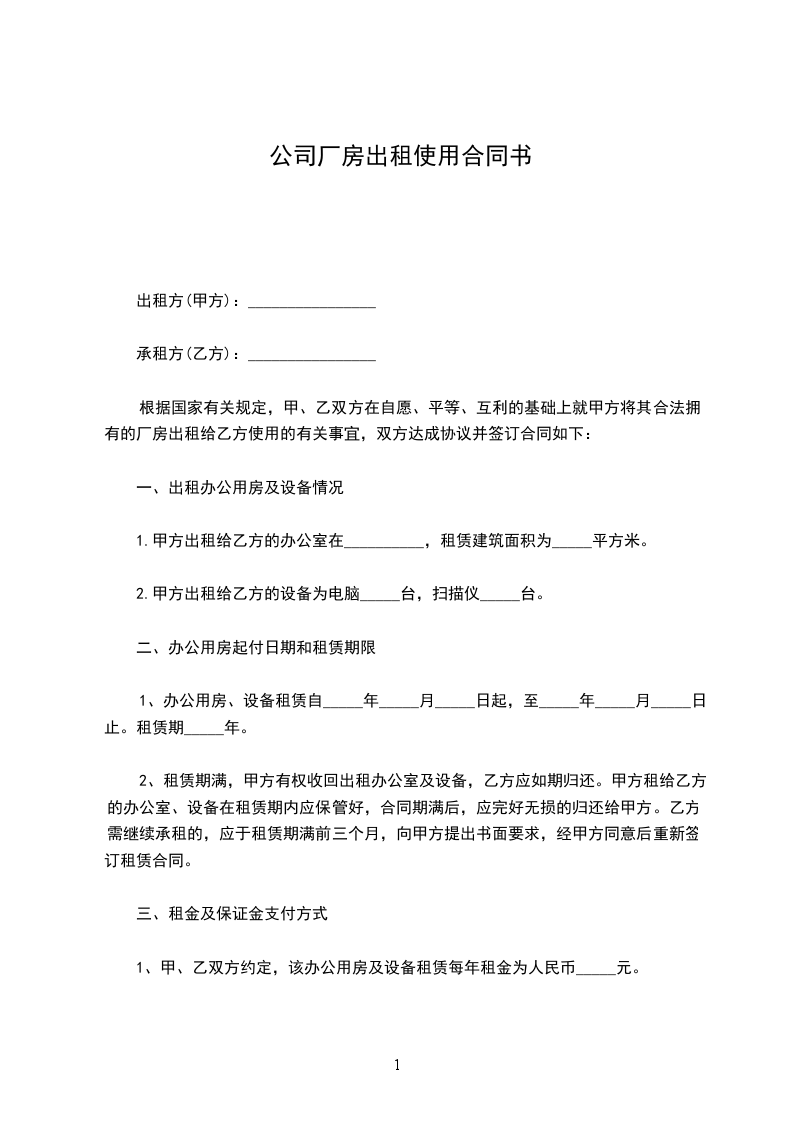1、办公用房、设备租赁自_____年_____月_____日起,至_____年_____月_____日止。租赁期_____年。