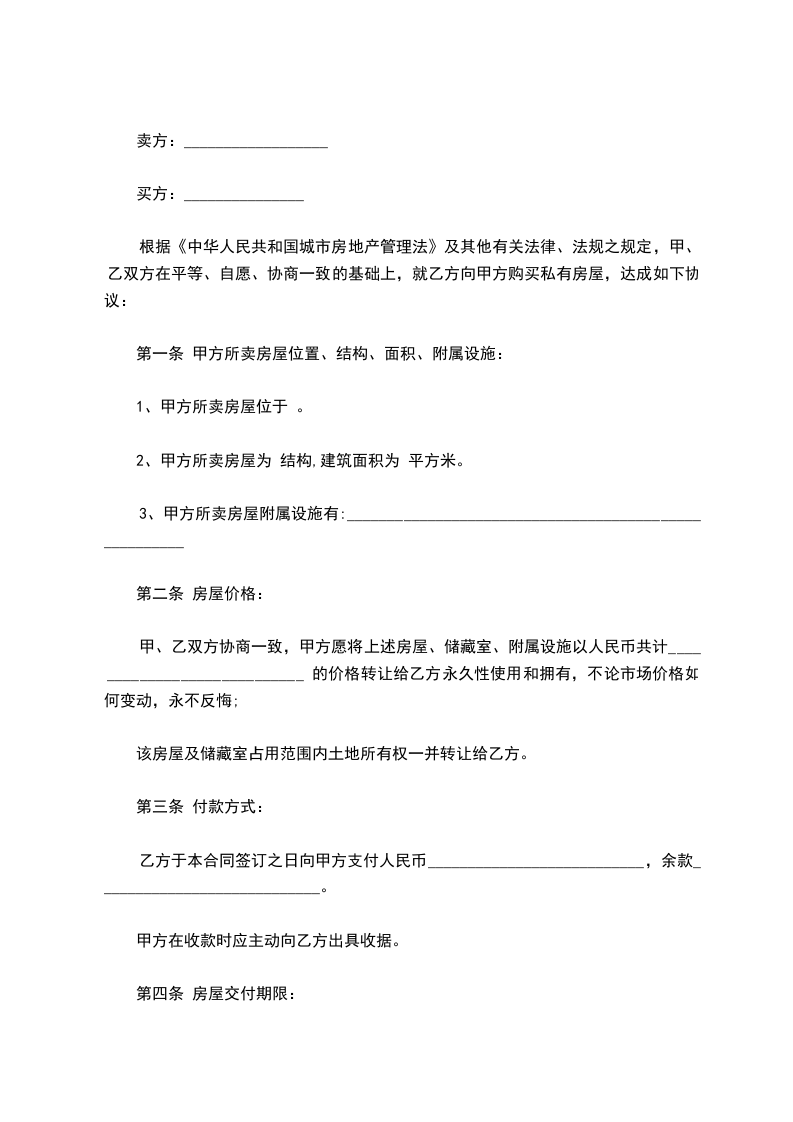 一、甲方自愿将其位于 ________的房产(建筑面积_____平方米)以人民币_______拾_______万_______仟_______佰_______拾_____________元整(¥____________元)的价款出售给乙方。