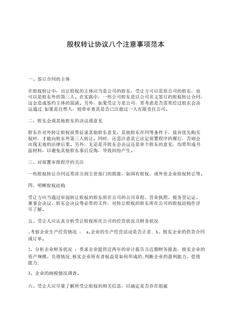 六、受让人应尽量了解所受让股权的相关信息,以确定是否存在瑕疵