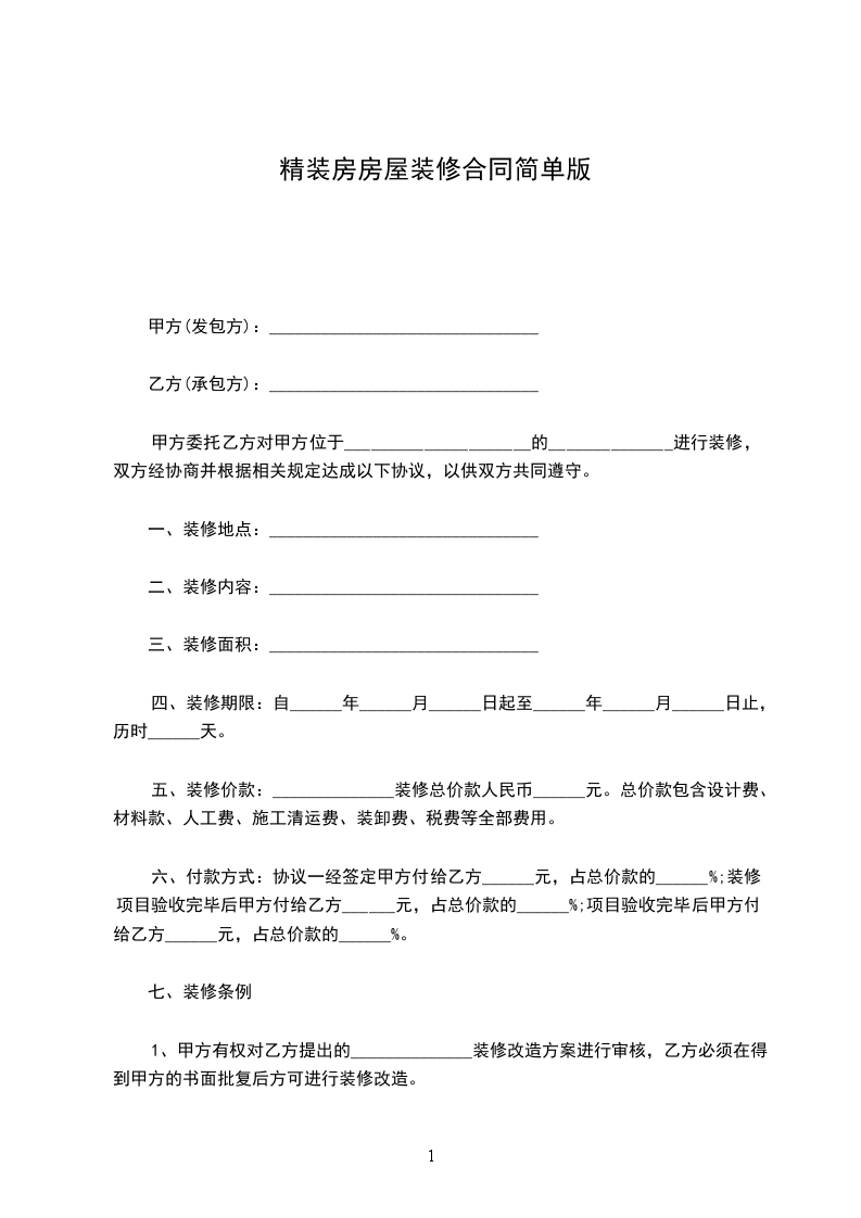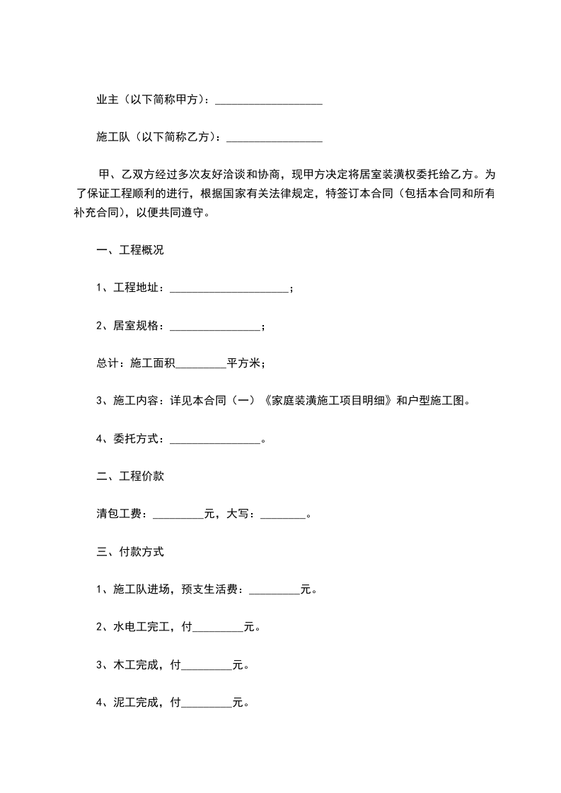 六、工程造价:材料由甲方提供,甲方支付乙方装修人工费_________元人民币。