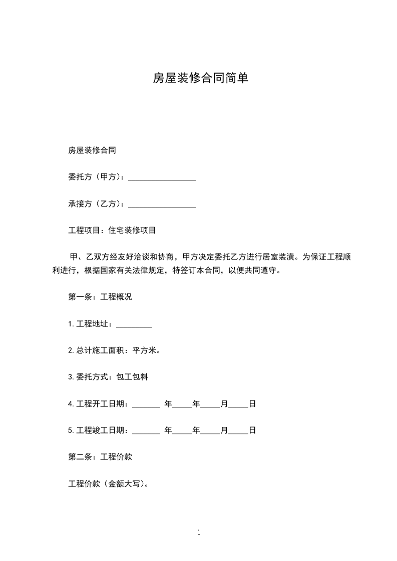 一、工程地点:________区________街________单元________室。