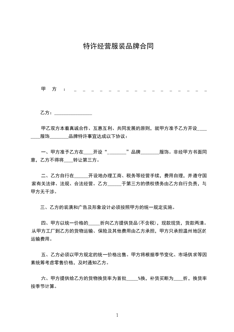 十二、特许经营甲方产品范围乙方必须在指定的区域内进行经营,不得跨区域进行经营,并保证不串货,不得销售假冒甲方的产品。否则甲方有权对其所销售的产品处以每件100元的罚款,并视其情节终止其销售权。同时乙方无条件退出其所经营甲方产品的市场,并按甲方供货价格倒扣30%—50%交回未销售产品。今后禁止在市场上销售有甲方商标和标识的产品。同时每个特许经营市场保证金一万元,不交保证金者市场出现串货行为甲方不予协调解决。