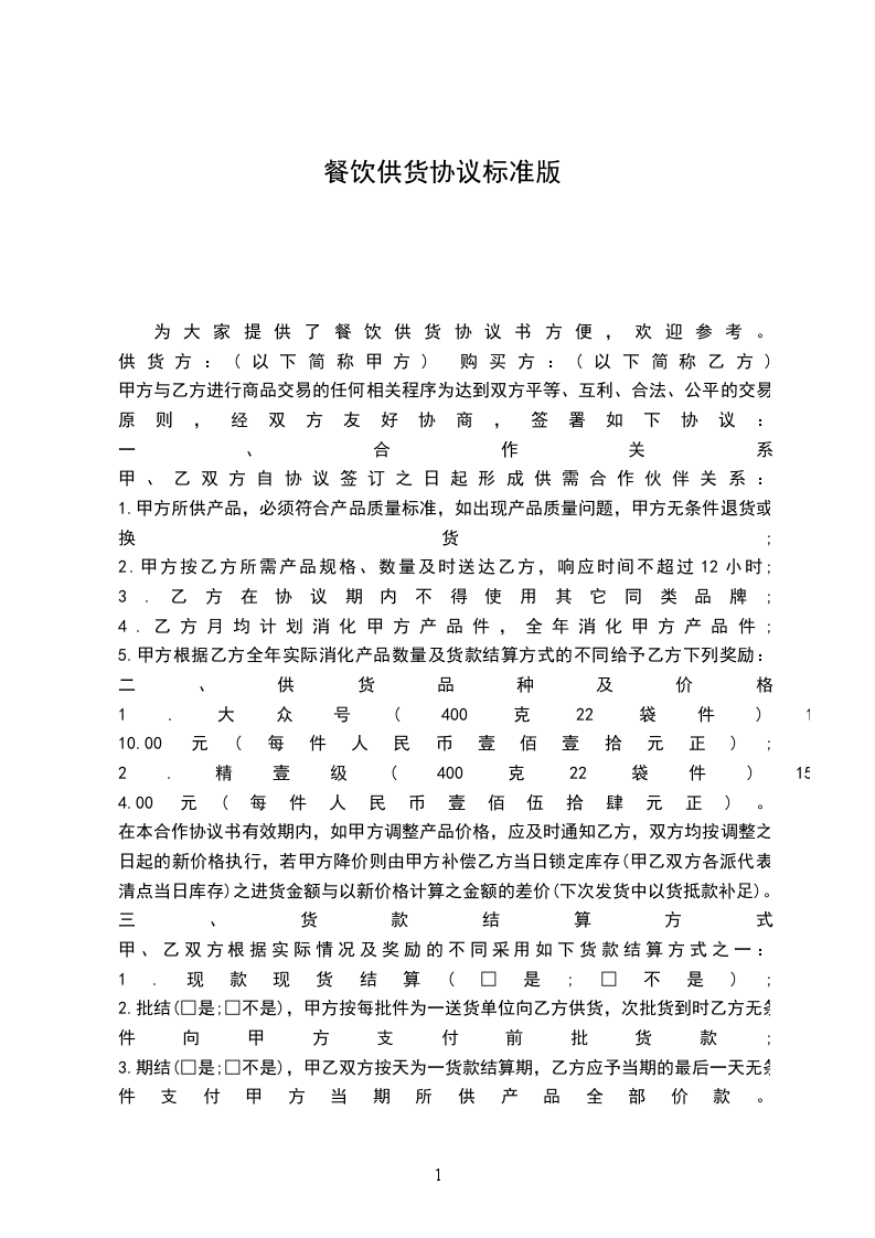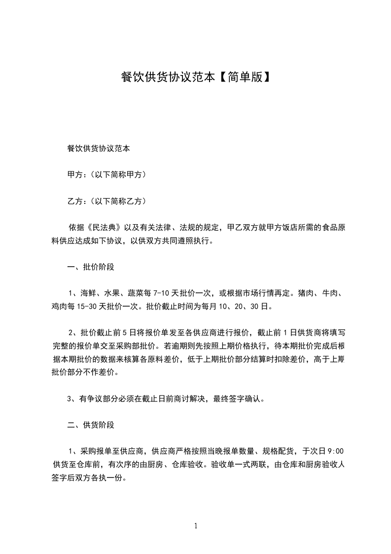 为大家提供了餐饮供货协议书方便,欢迎参考。