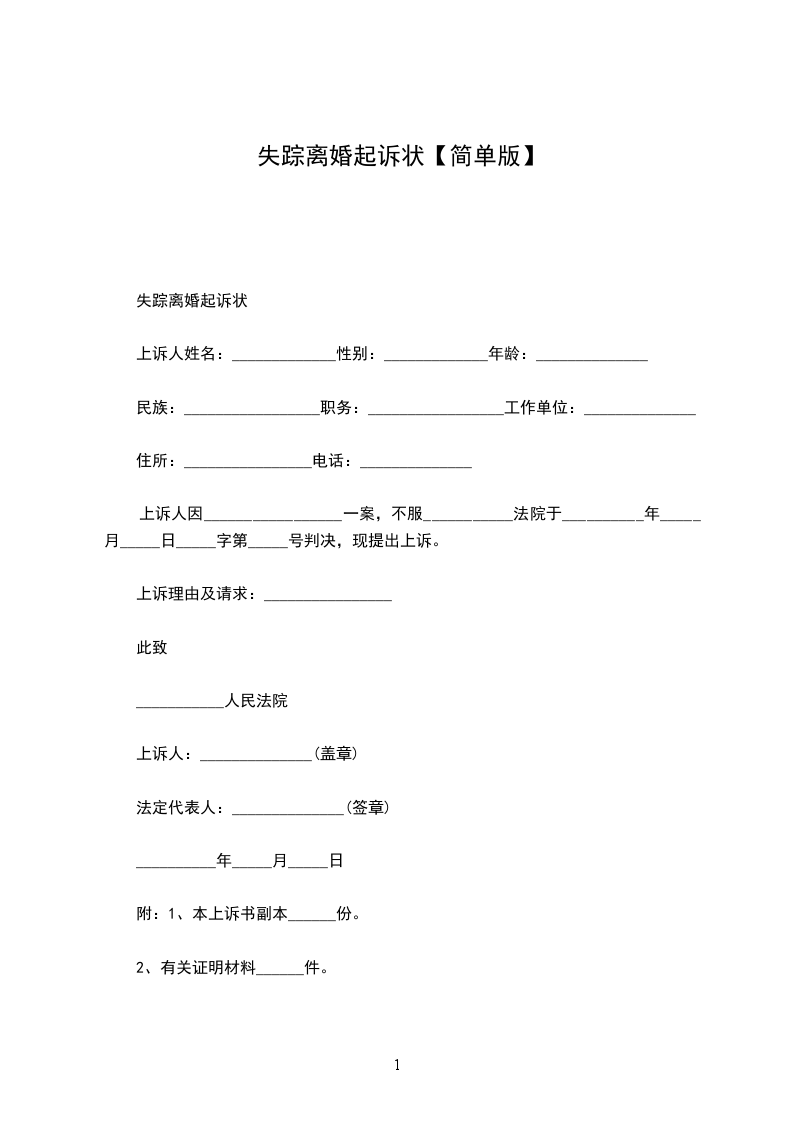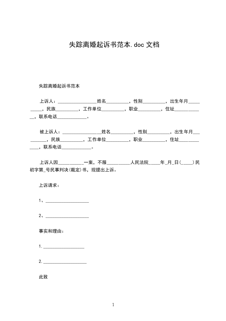 原告:________,民族________,出生________年________月________日,工作职务________,居住地址________________________,电话:________________