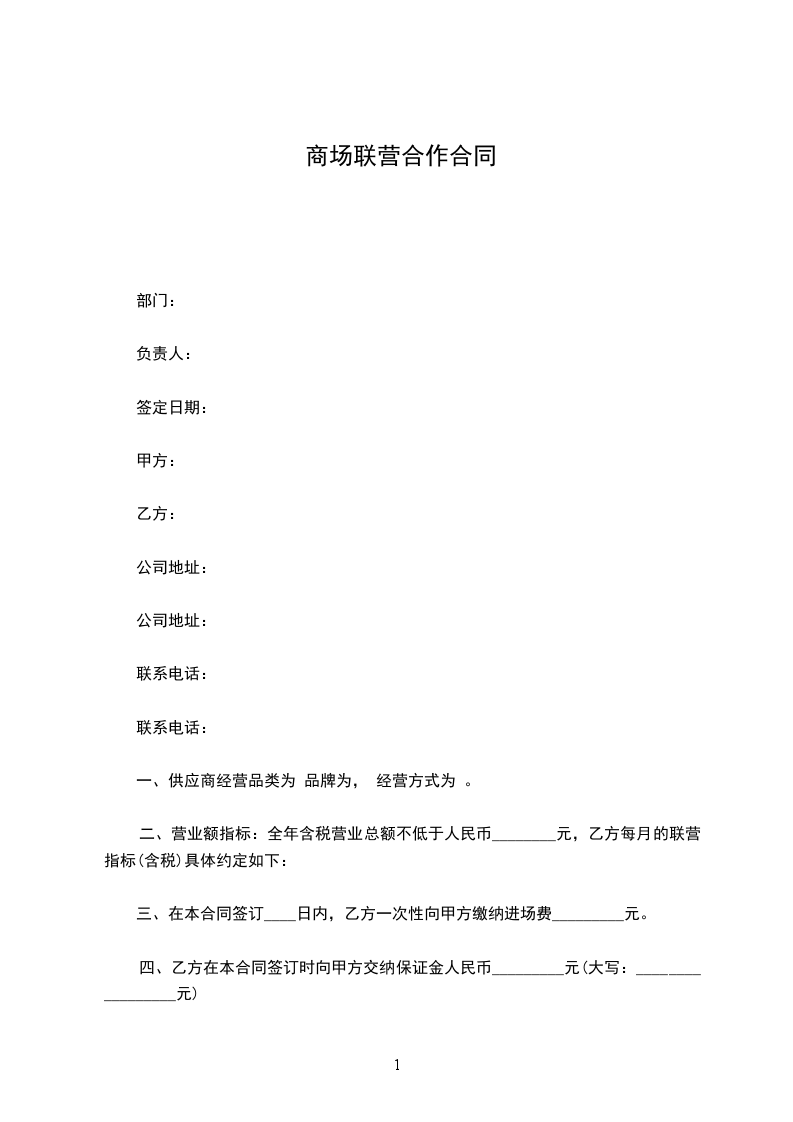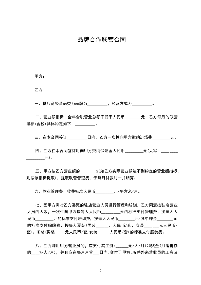 1.乙方承诺在联营合作之前, 没有存在债权债务纠纷,如存在债权债务纠纷由乙方单方面承担,由此给甲方造成的损失由乙方负责赔偿;