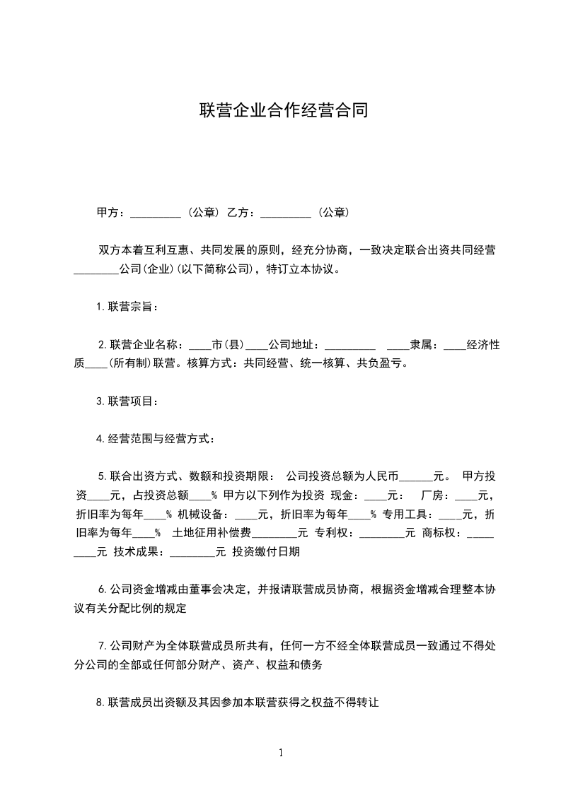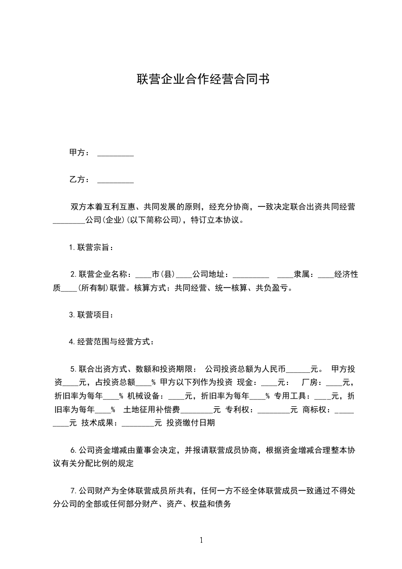 1.联营合作期间,甲方的法定代表人担任乙方的法定代表人,本协议签订后 日内,由乙方负责办理工商变更登记,甲方予以协助;