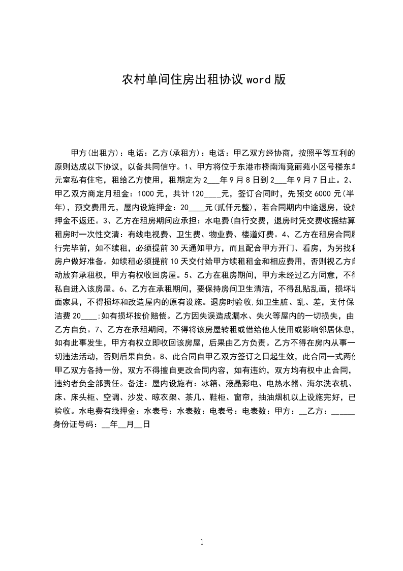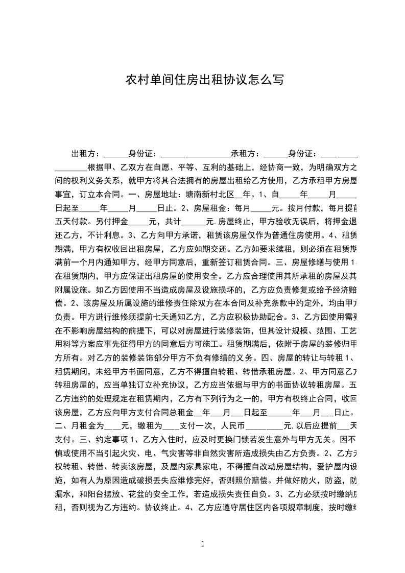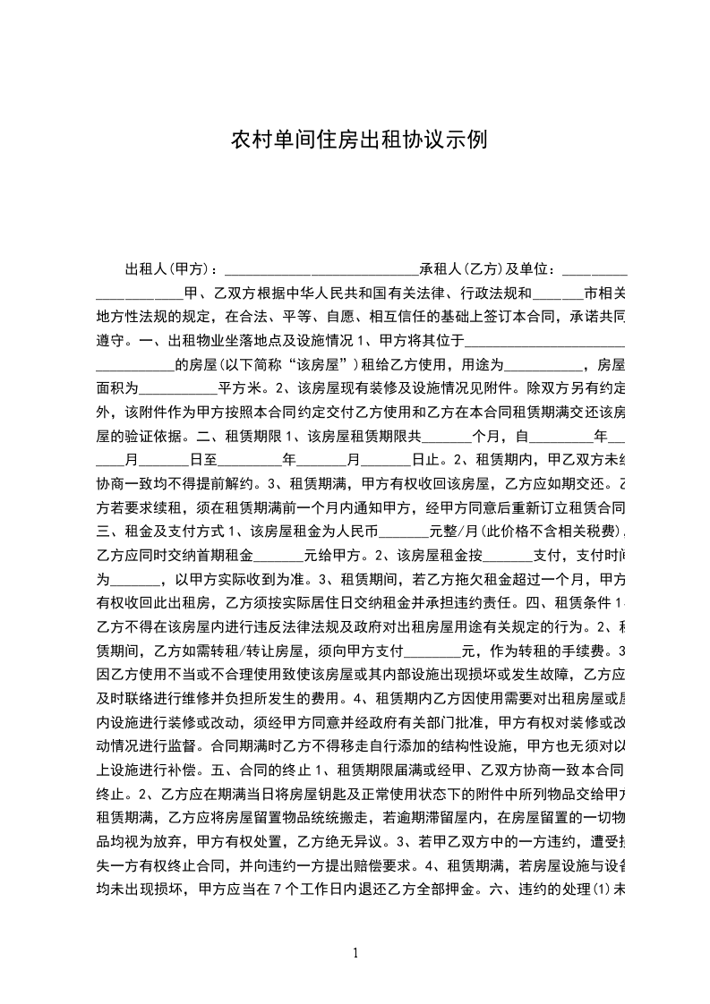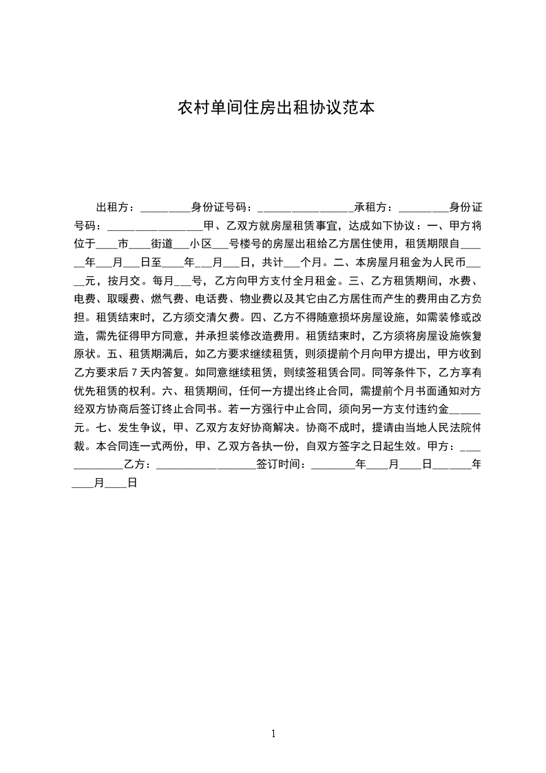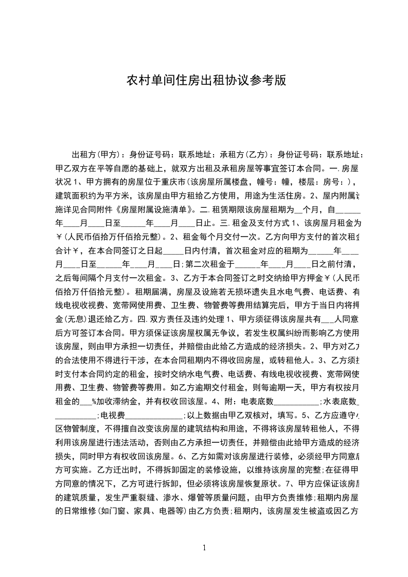 一、房屋地址:________室内的一间单间。用于普通住房。