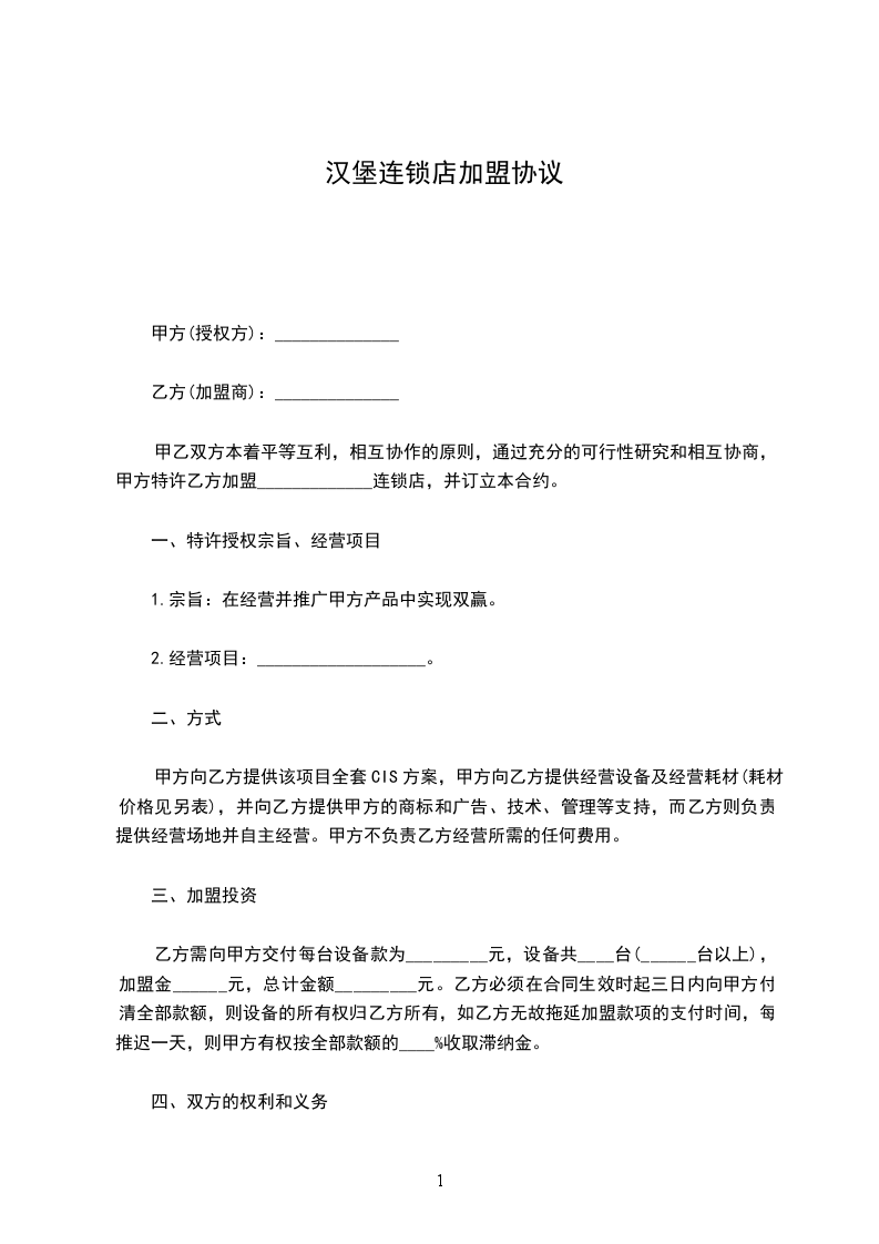 甲乙双方本着平等互利,相互协作的原则,通过充分的可行性研究和相互协商,甲方特许乙方加盟_____________连锁店,并订立本合约。