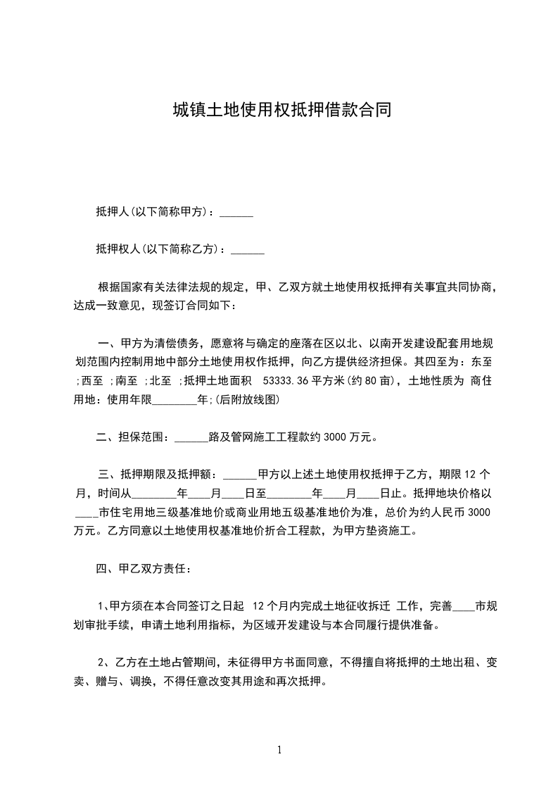 三、抵押期限及抵押额:______甲方以上述土地使用权抵押于乙方,期限12个月,时间从________年____月____日至________年____月____日止。抵押地块价格以____市住宅用地三级基准地价或商业用地五级基准地价为准,总价为约人民币3000万元。乙方同意以土地使用权基准地价折合工程款,为甲方垫资施工。