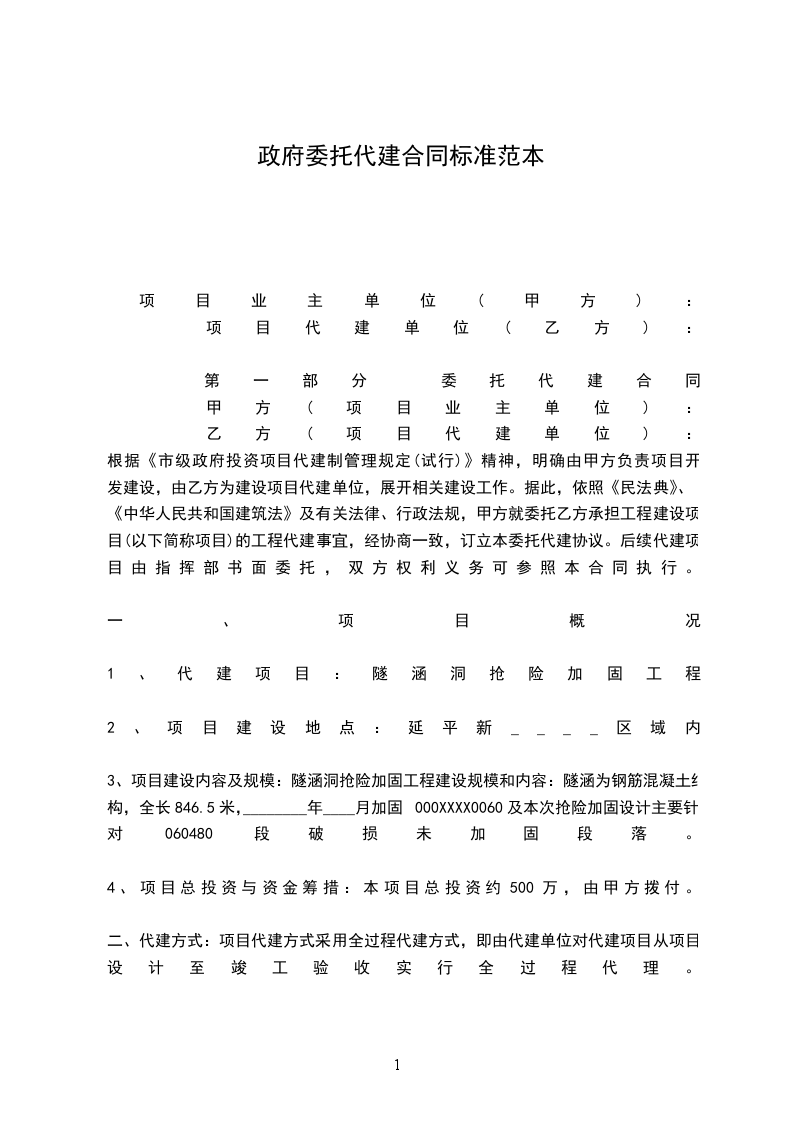 第一部分 委托代建合同